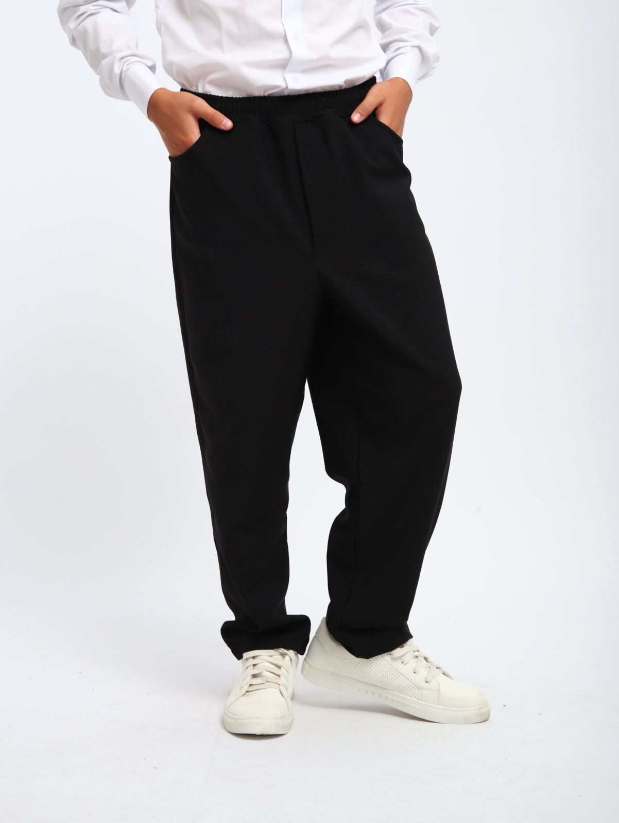 Брюки школьные для мальчика выполнены из прочной и плотной ткани черного цвета на флисе с изнаночной стороны, поэтому держат форму и дают свободу движения. Прямой оверсайз крой, пояс на резинке без застежки помогает быстро подогнать посадку - удобные и на уроках, и во время активных перемен. Наши свободные брючки из стрейч ткани с акцентом на комфорт и стиль. Модная трикотажная модель в стиле кэжуал (casual) то что нужно для весны и осени,также базовые демисезонные штанишки - это практичная детская одежда на каждый день. Широкие костюмные штаны для подростка - школьника сейчас популярные в весенние и осенние периоды. Эти подростковые брюки из трикотажа настолько крутые и стильные, что легко вписываются в повседневный образ. Отличный вариант для активных мальчишек для носки в прохладную погоду, т.к. они сочетают трендовые детали и проверенную классику, чтобы ваш сын выглядел безупречно и чувствовал себя уверенно. Брюки чиносы зауженные – стильный тренд и универсальные брюки, которые легко впишутся в любой наряд вашего парня. Прямой крой и высокая посадка создают стильный и удобный силуэт, а пояс на резинке со шнурком позволяет отрегулировать посадку по фигуре. Брюки оснащены карманами в швах, что удобно для хранения мелочей. Однотонный дизайн в синем или темно-синем цвете легко сочетается с любыми футболками и свитерами, делая эти брюки универсальным вариантом для повседневной носки.