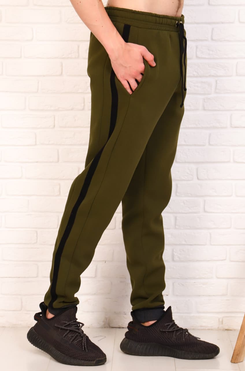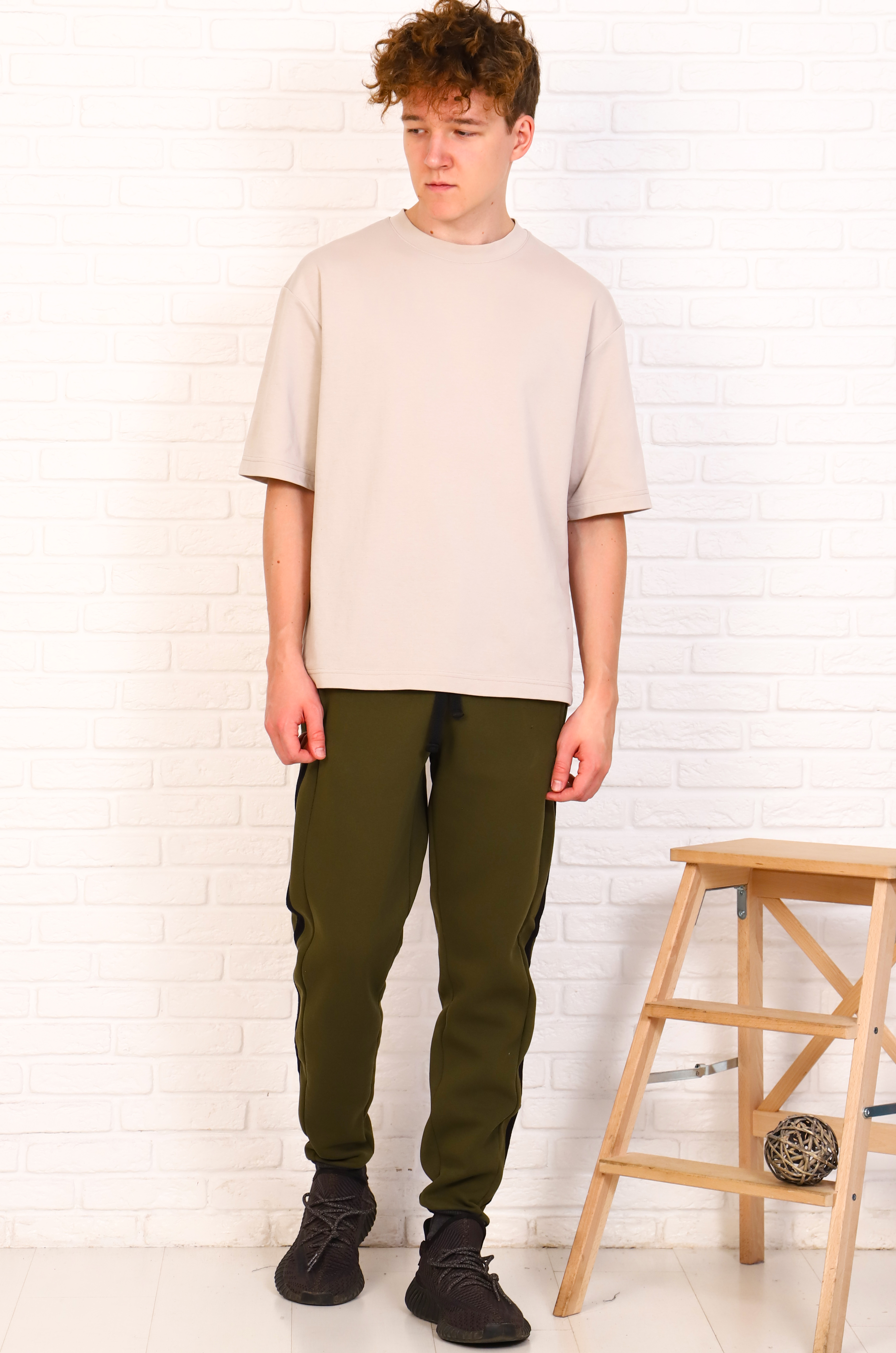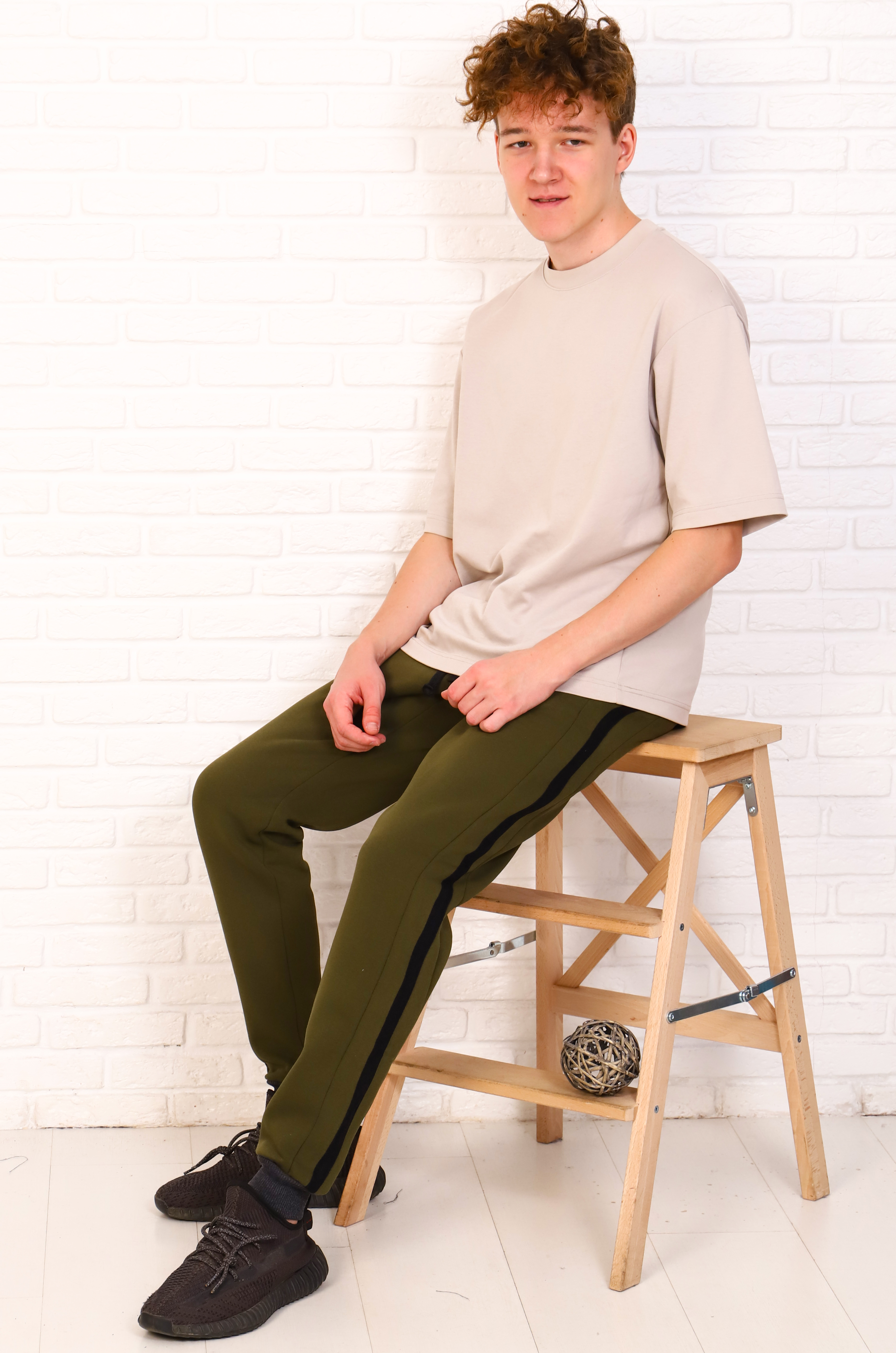 Модная и стильная модель зауженных спортивных брюк из тёплого супер-футера с начёсом, плотностью 320-350 г/м2. Манжеты снизу из эластичной рибаны, пояс на широкой резинке и со шнурком, удобные боковые карманы, по бокам широкая вставка с контрастной тесьмой.