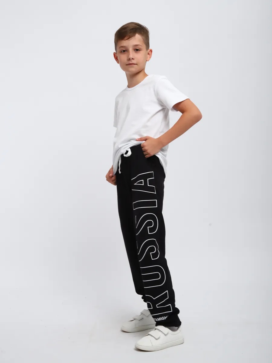 Подростковые спортивные штаны для мальчика и девочки это прекрасная спортивная форма для школы и секций . Детские широкие спортивные штаны на мальчика сшиты из качественного смесового трикотажа с хлопком , с карманами в боковых швах. Покрой штанов для физкультуры универсален, подходит детям помладше и подросткам. Пояс трико на резинке, эластичный, со шнурочком, не стягивает, мягко облегает. Джогеры для мальчика подростковые с манжетой внизу, так же мягко облегают ножку школьника. Спортивки немаркие, и потому практичные замечательно подходят для прогулок, активных спортивных игр. Спортивные штаны для мальчика подходят для танцев, гимнастики и бокса и фитнеса будут очень к стати. Натуральный состав делает трико для мальчика дышащими и комфортными для использования дома, как домашние трико. штаны для мальчика могут использоваться как повседневная одежда и одежда для дома. Если же ребенок решит использовать спортивные брюки для мальчика как домашние, то ему будет очень удобно, ведь покрой достаточно свободный, не стесняет движений. Школьная форма для детей должна быть удобной и функциональной, как эти джоггеры для мальчика. Базовая модель широких штанов для физкультуры универсальна. Качественная детская одежда помогает добиваться успеха детям в спортивых соревнованиях и в повседневной жизни. Наиболее востребованы штаны спортивные для мальчика на школьных уроках физкультуры. На тренировках зимой, весной, летом, и осенью такая удобная и приятная к телу форма это отличный вариант спортивной одежды для физически активных детей. Качественные детские и подростковые спортивное трико для подростков представлены в широком диапазоне размерного ряда . Брюки для мальчика на резинке подходят на младшеклассников, среднюю школу и старшеклассников! Немаркие детские штаны из трикотажа это лучший подарок для сына или дочери, внука или внучки. В брюках для мальчика на резинке удобно заниматься баскетболом, футболом. Штаны для мальчика спортивные это полезный подарок. Принт Россия.