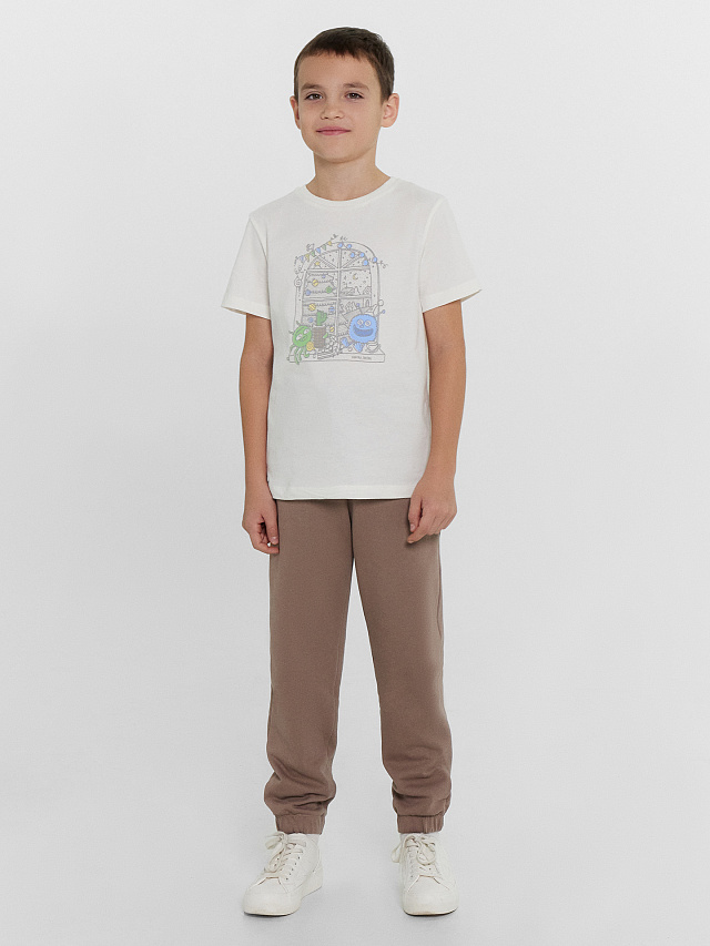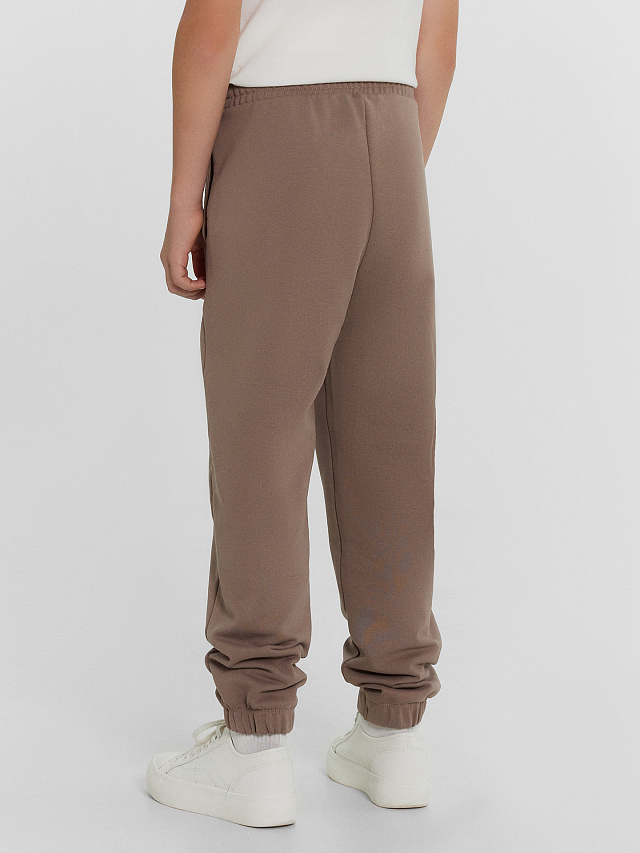 Брюки изготовлены из трикотажного полотна футер. Брюки свободного силуэта. Сиденье немного спущено. В боковых швах обработаны карманы. Подкладка карманов из кулирки.