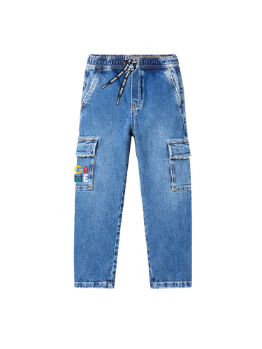 Джинсы детские для мальчика. BAGGY FIT - модный расслабленный крой. Средняя посадка. Джинсы на резинке со шнурком. Накладные карго-карманы.