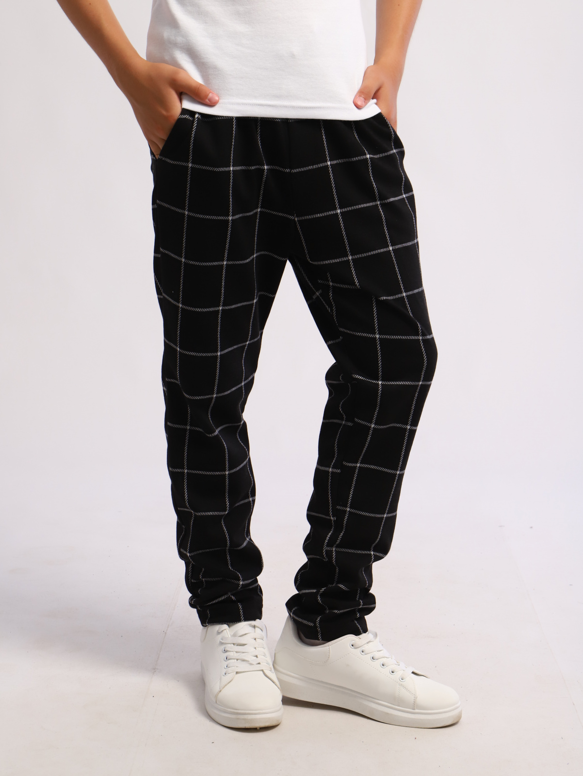 Простые, классические брюки в клетку в комплекте с рубашкой на мальчика или водолазкой для подростков помогут создать новый и неповторимый стильный образ. Так же можно сочетать с футболкой, майкой и лонгсливом.