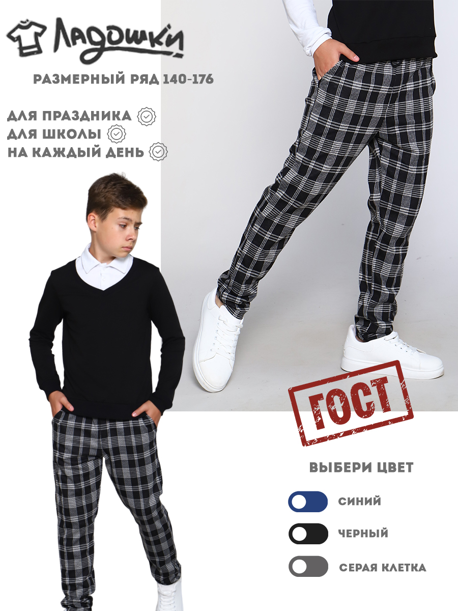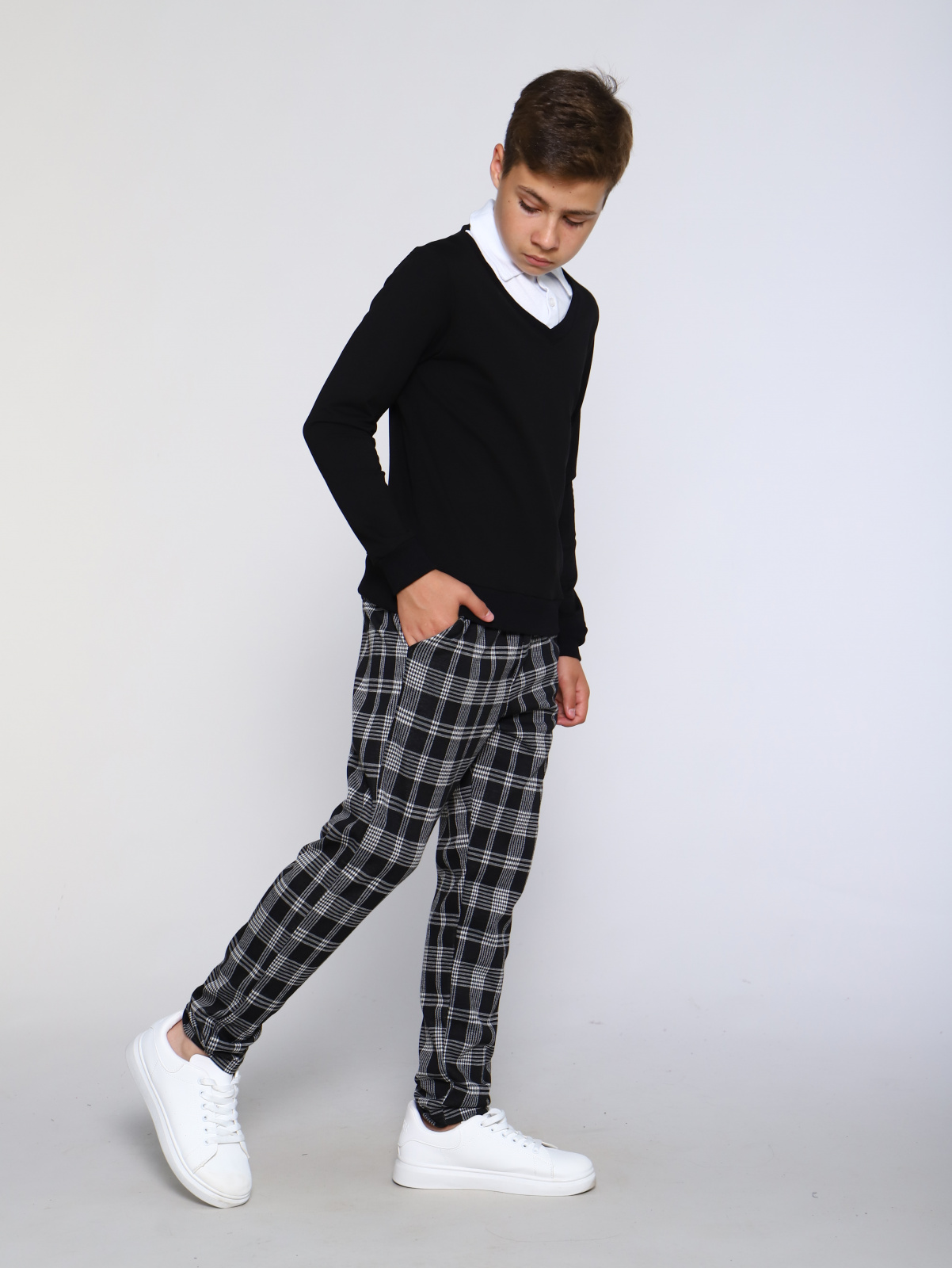 Простые, классические брюки в клетку в комплекте с рубашкой на мальчика или водолазкой для подростков помогут создать новый, неповторимый, стильный образ, так же можно сочетать с футболкой, майкой, лонгсливом, толстовкой, олимпийкой, свитшотом, легким худи.