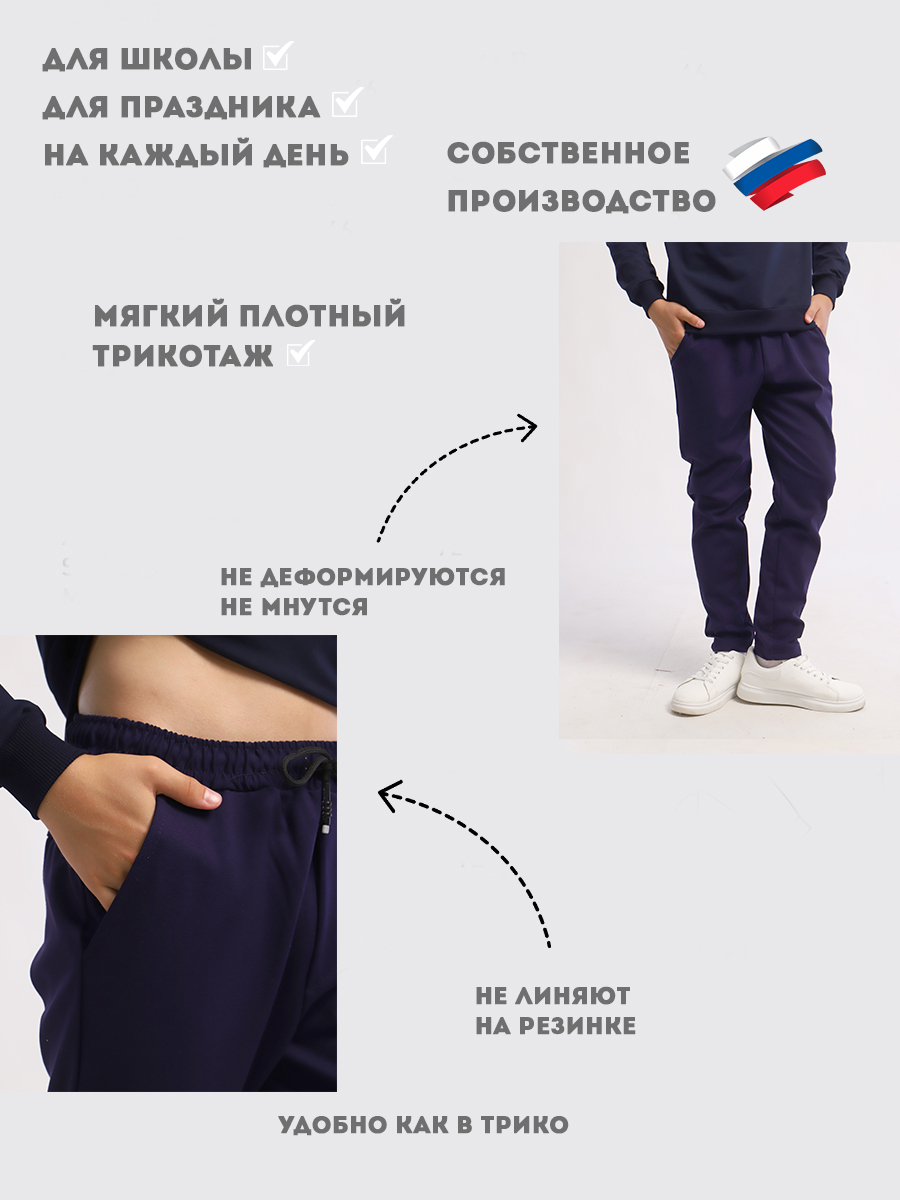 Модные трикотажные школьные брюки для мальчиков - подростков. Демисезонные штаны сшиты из мягкого костюмного трикотажа. Эластичные школьные на подростка идеально сидят на фигуре. В боковых карманах кармашки, пояс на резинке. Подростковая модель свободного кроя, зауженная к низу. Базовые универсальные садятся хорошо и на плотных мальчиков, и на тех кто постройнее. Трендовые унисекс, подходят на высоких и невысоких детей. Повседневные практичные немаркие. Используются круглогодично. Пояс на удобной резинке, хорошо фиксируются на талии. Модная детская модель прекрасно сочетется с классическими и со спортивными вещами. удобны для занятий в школе поскольку не давят на живот за счет эластичной резинки в поясе. Школьная форма должна быть удобной и комфортной как эти брюки. В в них удобно гулять, играть и активно двигаться. Предложите одеть эту модель парню в поездку на отдых или в детский лагерь и он будет выглядеть элегантно. Праздничные мероприятия, торжественные события то же не обойдутся без такой классической деловой одежды. Это прекрасный практичный и нужный подарок к началу учебного года. Школьная форма для мальчика.Подарок на Новый Год. Новогодние подарки для детей.Подходит для последнего звонка и выпускного.