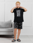 Базовая футболка для мальчика, из кулирки плотностью 160г/м2. Модель со слегка спущенной линией плеч и округлым вырезом горловины.