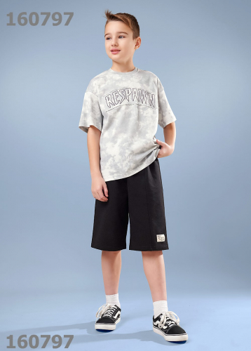 "Описание: Удлинённые шорты с эффектом варки дополнены рельефами спереди. Комфортная посадка по фигуре, регулировка объёма по талии, стильная нашивка. Сочетай модель с футболкой или лонгсливом из новой коллекции и будь в тренде.