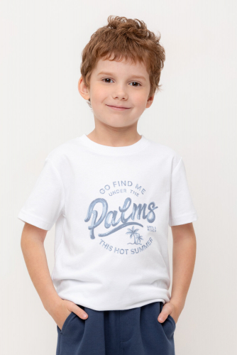 Футболка для мальчика из высококачественного трикотажного полотна. Оригинальный принт выполнен из стойких текстильных гипоаллергенных красителей. Для удобства в размерах 92 и 98 на спинке есть застежка на кнопки.