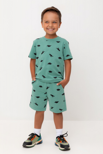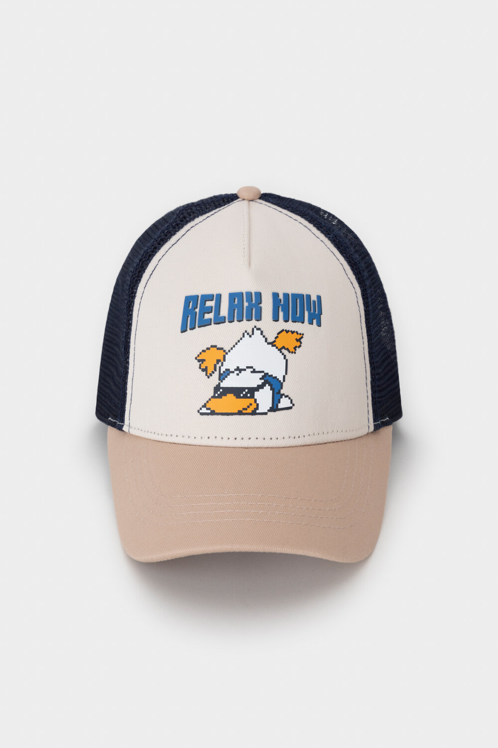 Кепка для мальчика из текстиля и сетки. Спереди украшена оригинальным принтом. Регулируется по ширине головы и фиксируется на затылке с помощью пластиковой застёжки.
