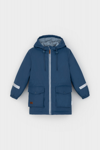 Демисезонная куртка для мальчика с утеплителем SEE®: 120 г/м2. Выполнена из мембранной ткани с дополнительной тефлоновой обработкой. Данный вид обработки предохраняет изделие от загрязнения и лучше отводит влагу. Подклад из 100% полиэстра. У изделия предусмотрена защита подбородка. Несъемный капюшон регулируется с помощью эластичного шнура со стопперами. Низ рукавов изделия имеет эластичную резинку для лучшего прилегания. На талии скрытая утяжка. Спереди два накладных кармана с клапанами на кнопках. Во всех изделиях верхнего ассортимента для безопасности ребенка предусмотрены светоотражающие элементы.