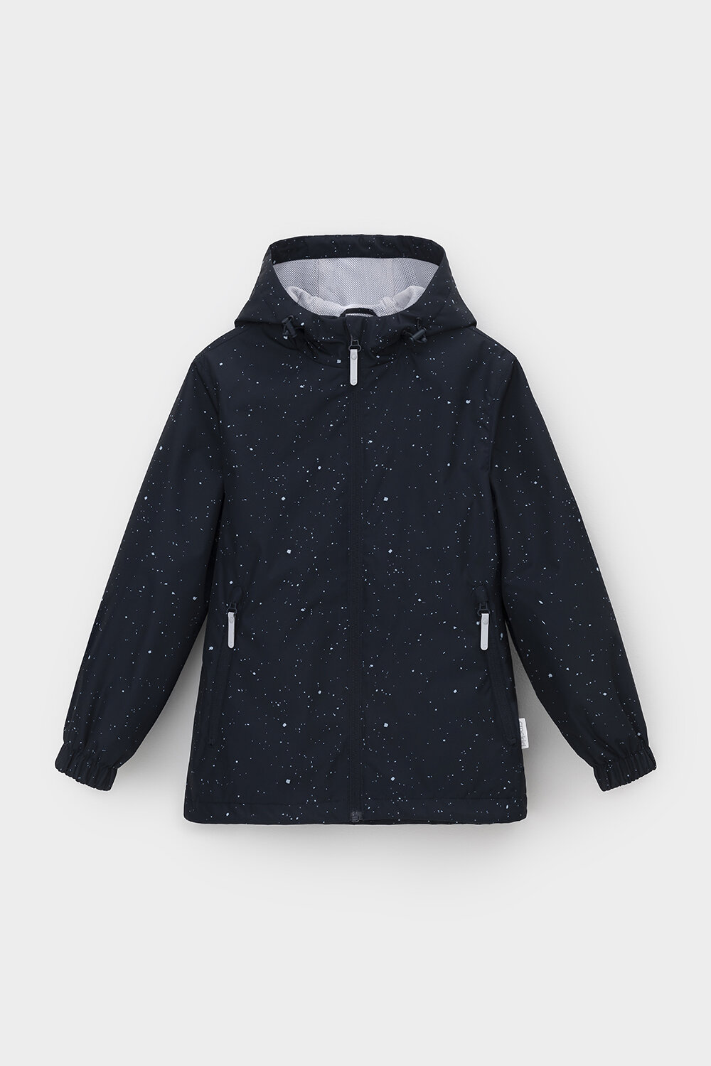 Ветровка для мальчика из мембранной ткани с дополнительной тефлоновой обработкой. Верхняя мембранная ткань 1000/1000 с тефлоновым покрытием отталкивает воду и грязь и обладает «дышащими» свойствами. Подкладка выполнена из сетки, 100% полиэстер. У изделия предусмотрена защита подбородка. Несъемный капюшон утягивается с помощью регулирующего шнура со стопперами. На рукавах эластичные манжеты. Низ изделия регулируется эластичной утяжкой со стопперами. Во всех изделиях верхнего ассортимента для безопасности ребенка предусмотрены светоотражающие элементы.