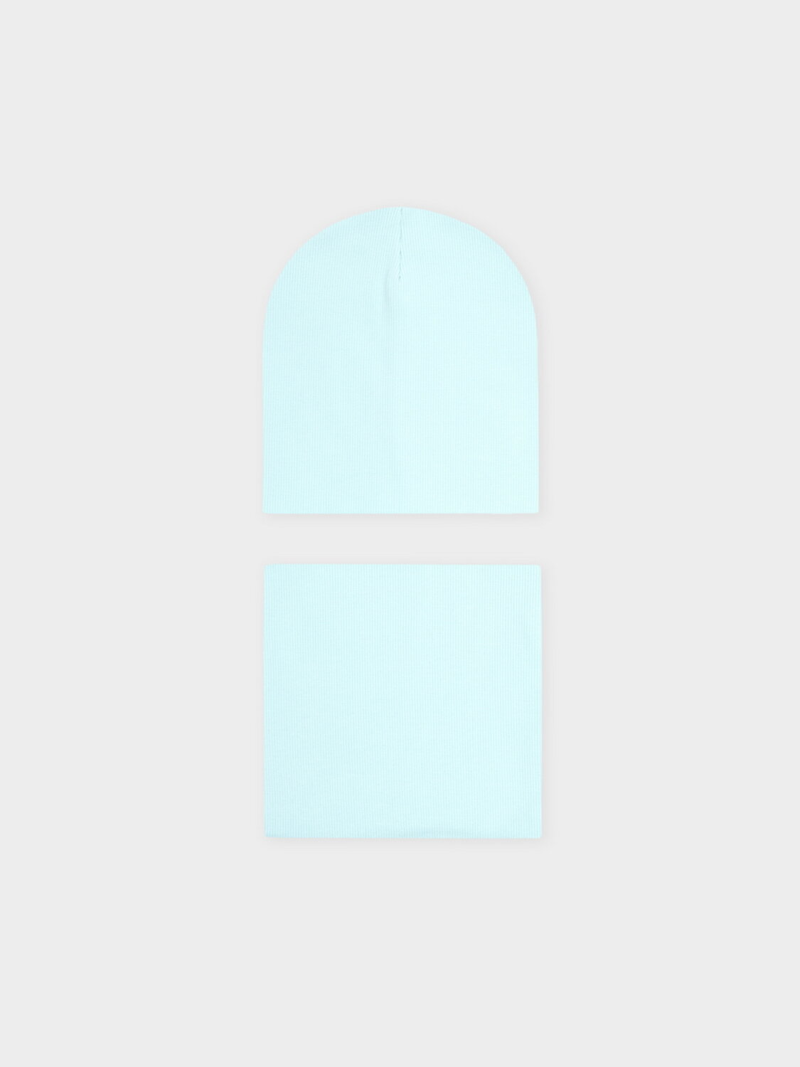 Комплект для девочки: шапка и снуд из хлопкового трикотажа в рубчик с добавлением эластана, окрашенного стойкими гипоаллергенными текстильными красителями. Изделия хорошо тянутся, после многократных стирок сохраняют цвет и форму.