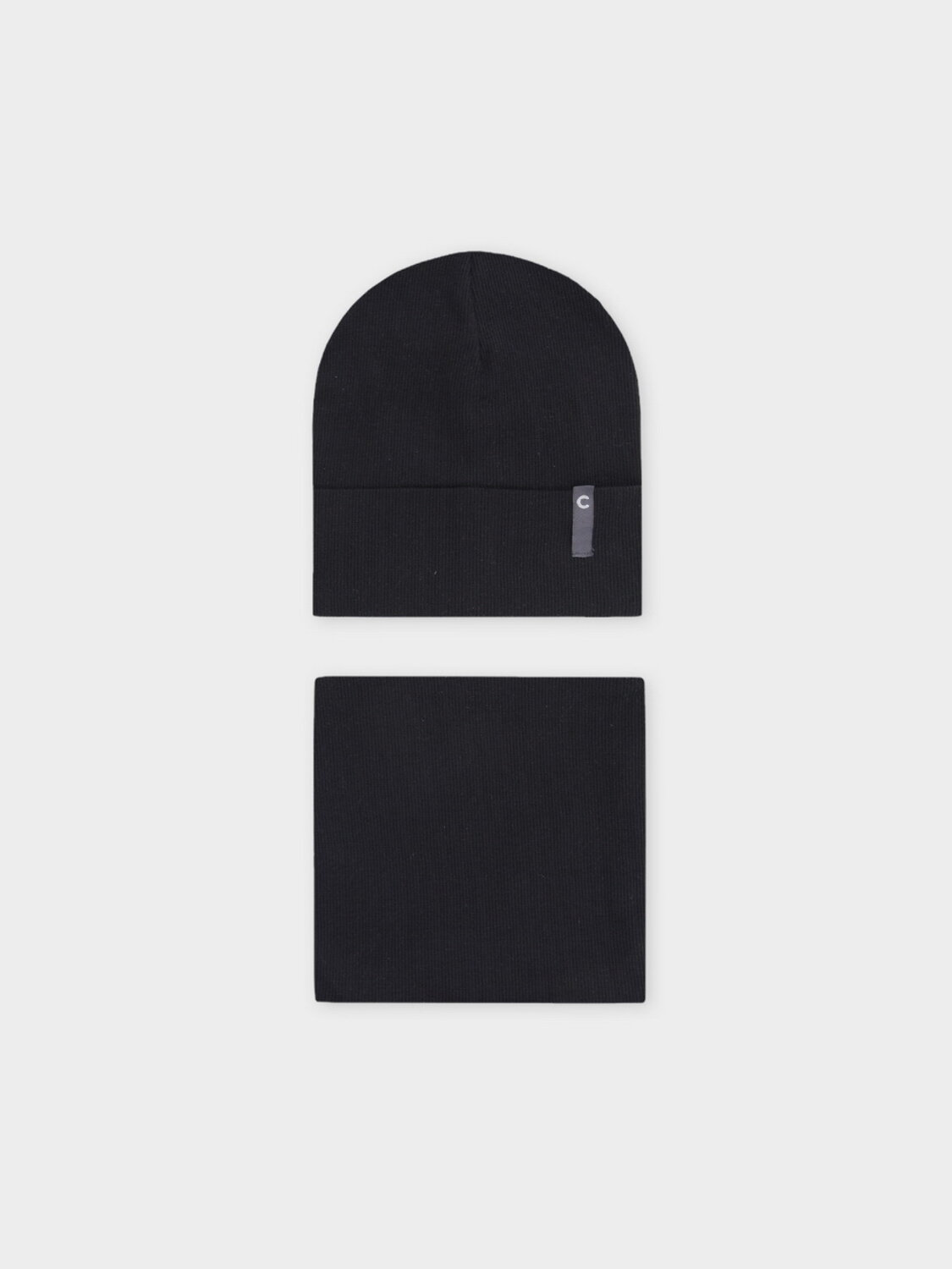 Комплект детский: шапка и снуд из хлопкового трикотажа в рубчик с добавлением эластана, окрашенного стойкими гипоаллергенными текстильными красителями. Изделия хорошо тянутся, после многократных стирок сохраняют цвет и форму.