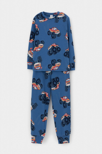 Трикотажная пижама из натурального хлопка. Джемпер с длинными рукавами с эластичными манжетами. У брюк эластичный пояс на резинке. Оригинальная набивка выполнена из стойких, гипоаллергенных текстильных красителей. Пижама сохраняет цвет и форму после многократных стирок. Все трикотажные полотна производятся в соответствии с нормами Швейцарского сертификата ЭкоТекс.