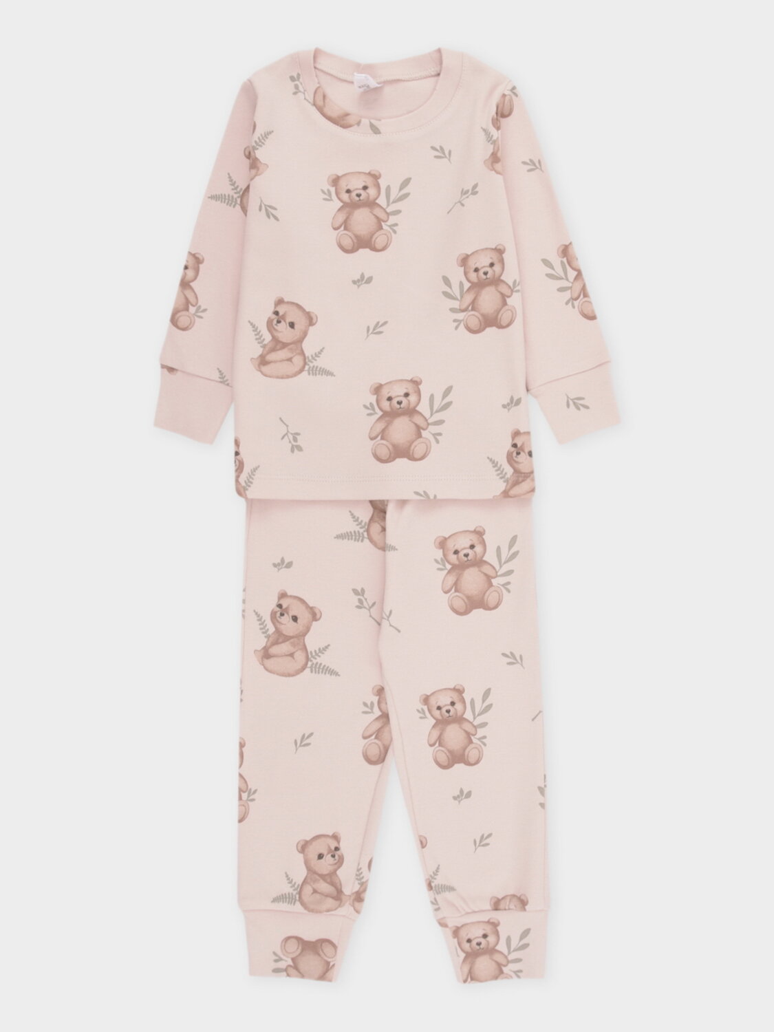 Трикотажная пижама из натурального хлопка. Джемпер с длинными втачными рукавами и брюки с эластичной резинкой в поясе. Мягкие манжеты на рукавах и по низу брюк. Оригинальная набивка выполнена из стойких текстильных красителей. Изделие сохраняет цвет и форму после многократных стирок. Все трикотажные полотна производятся в соответсвии с нормами швейцарского сертификата ЭкоТекс.