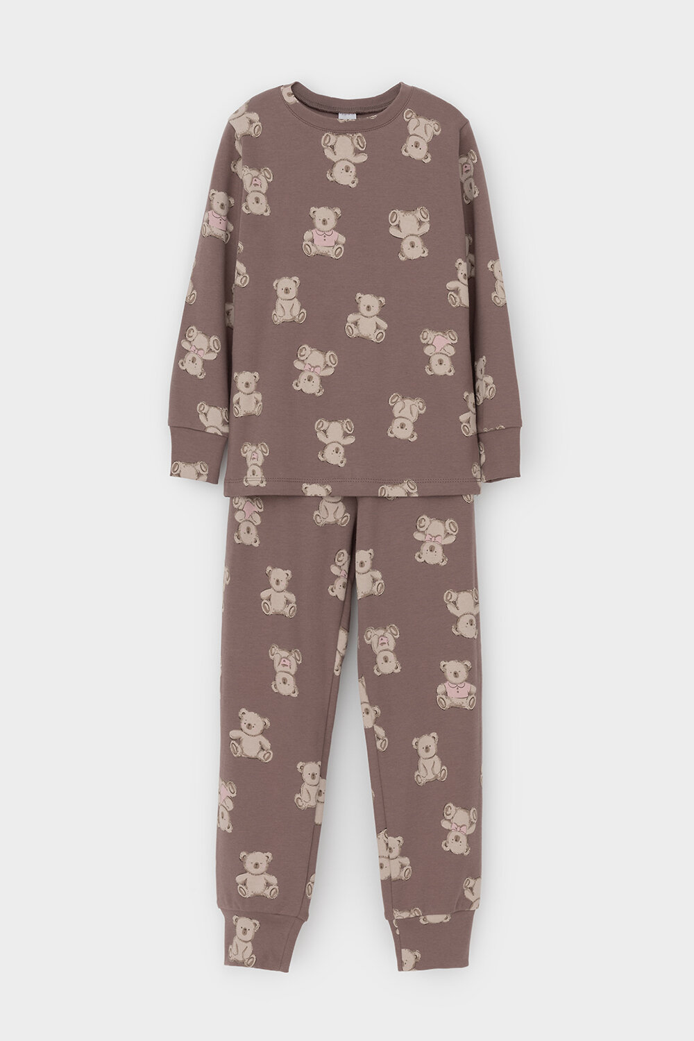Трикотажная пижама из натурального хлопка. Джемпер с длинными втачными рукавами с принтом. У брюк в комплекте мягкий, эластичный пояс на резинке. Оригинальная набивка выполнена из стойких, гипоаллергенных текстильных красителей. Комплект сохраняет цвет и форму после многократных стирок. Все трикотажные полотна производятся в соответсвии с нормами Швейцарского сертификата ЭкоТекс.