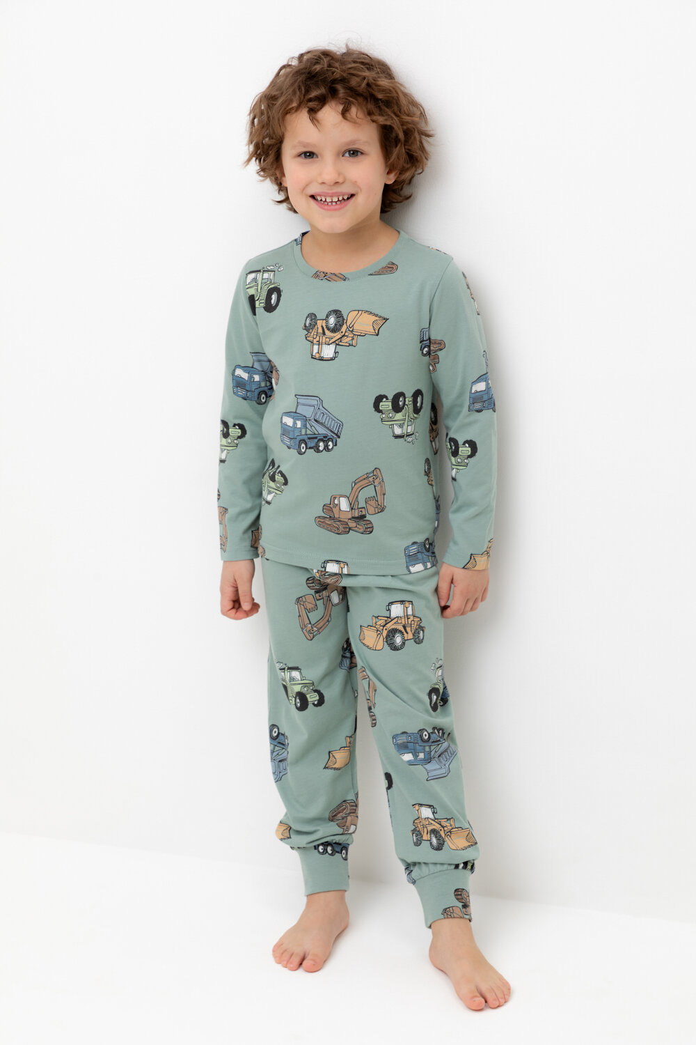 Трикотажная пижама из натурального хлопка. Джемпер с длинными втачными рукавами и брюки с эластичной резинкой в поясе. Мягкие манжеты по низу брюк. Оригинальная набивка выполнена из стойких гипоаллергенных текстильных красителей. Изделие сохраняет цвет и форму после многократных стирок. Все трикотажные полотна производятся в соответсвии с нормами швейцарского сертификата ЭкоТекс.