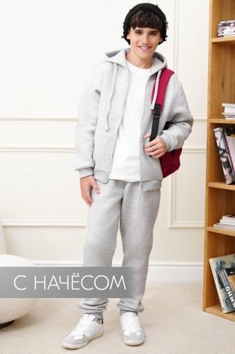 Детский костюм с худи и брюками для мальчиков и девочек выполнен из плотного трикотажа футер с начесом. Базовый светло-серый цвет делает комплект для подростков универсальным и легко вписывается в повседневные образы.