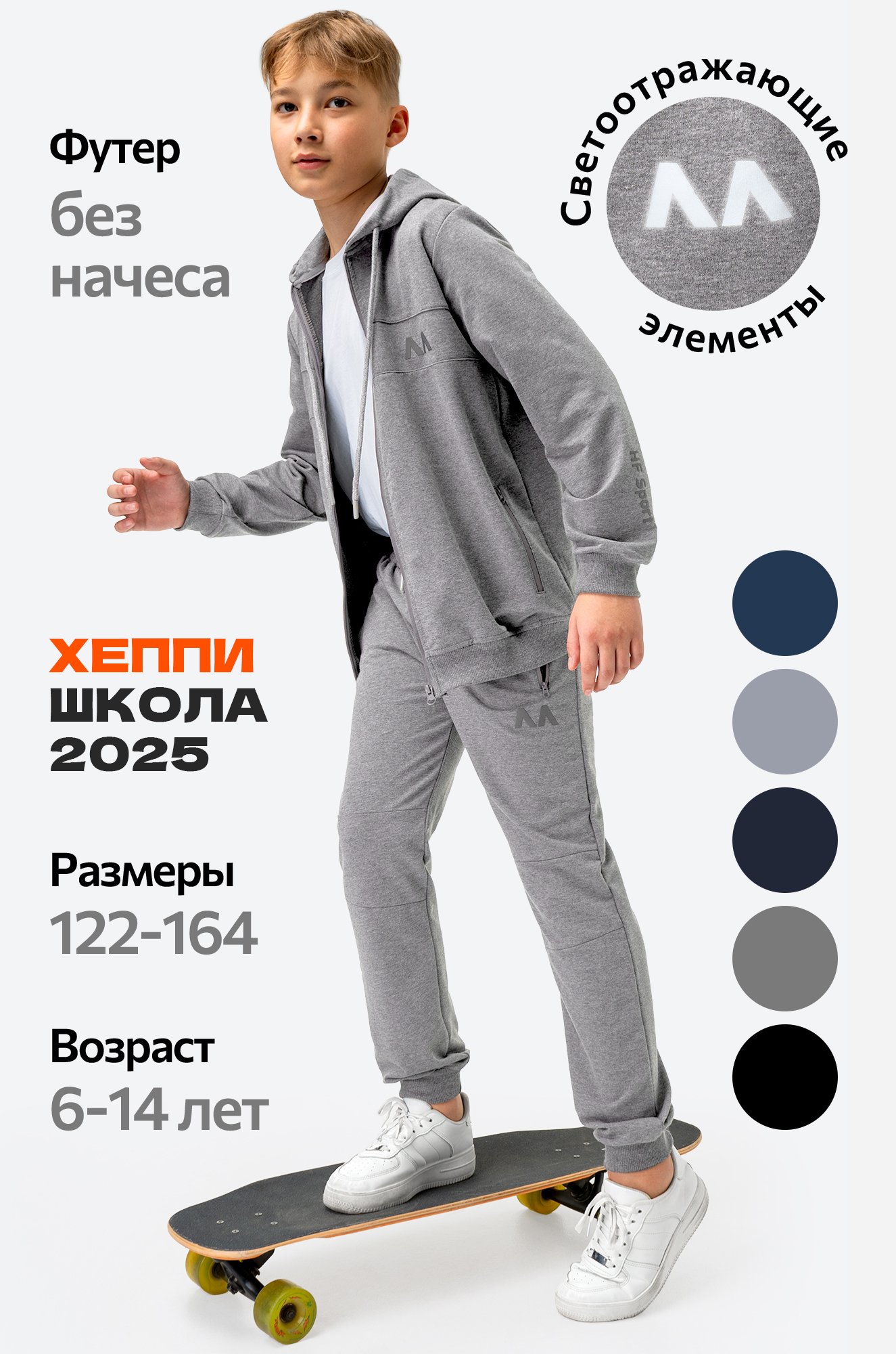 Комфорт в каждом движении! Детский спортивный костюм с брюками для мальчиков и девочек выполнен из плотного футера двухнитки. Толстовка с застежкой на молнию, глубокий капюшон, мягкие манжеты и светоотражающие элементы делают серый костюм для детей и подростков стильным и практичным.