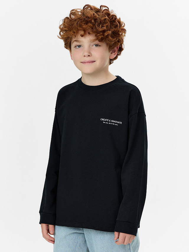 Лонгслив для мальчиков свободного силуэта — удобная и универсальная модель для активного дня, учёбы или домашнего отдыха. Благодаря слегка спущенной линии плеча и свободному крою, изделие не ограничивает движений, обеспечивая комфорт в любых ситуациях. Длинные рукава с манжетами из рибаны надежно фиксируются, остаются аккуратными даже при активной носке и добавляют изделию структурности. Круглая горловина с обтачкой из рибаны сохраняет форму и не растягивается, а аккуратная обработка низа швом в подгибку придает завершенность и помогает изделию оставаться устойчивым к износу. Модель выполнена из хлопковой кулирки — лёгкого и дышащего трикотажного материала, который приятен к телу и отлично подходит для детской одежды. Лонгслив легко сочетается с джинсами, спортивными брюками или шортами и может использоваться круглый год, как базовый элемент гардероба.
