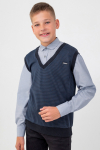 — рубашка 2 в 1 имитирует комплект школьной формы: рубашку с длинным рукавом и темно-синий полосатый жилет с V-образным вырезом;
