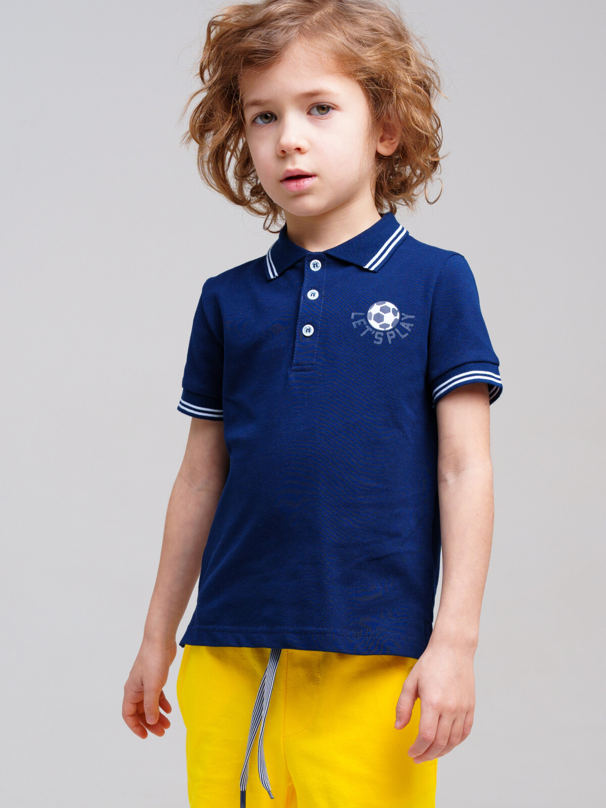 Футболка-поло детская для мальчика. Поло классической посадки из фактурного трикотажного полотна пике. Модель с высоким содержанием хлопка 95%. Благодаря наличию эластана в составе ткани изделие проще в уходе и держит форму. Планка с застежкой на пуговицы. Модель выполнена из качественного и приятного на ощупь трикотажа.