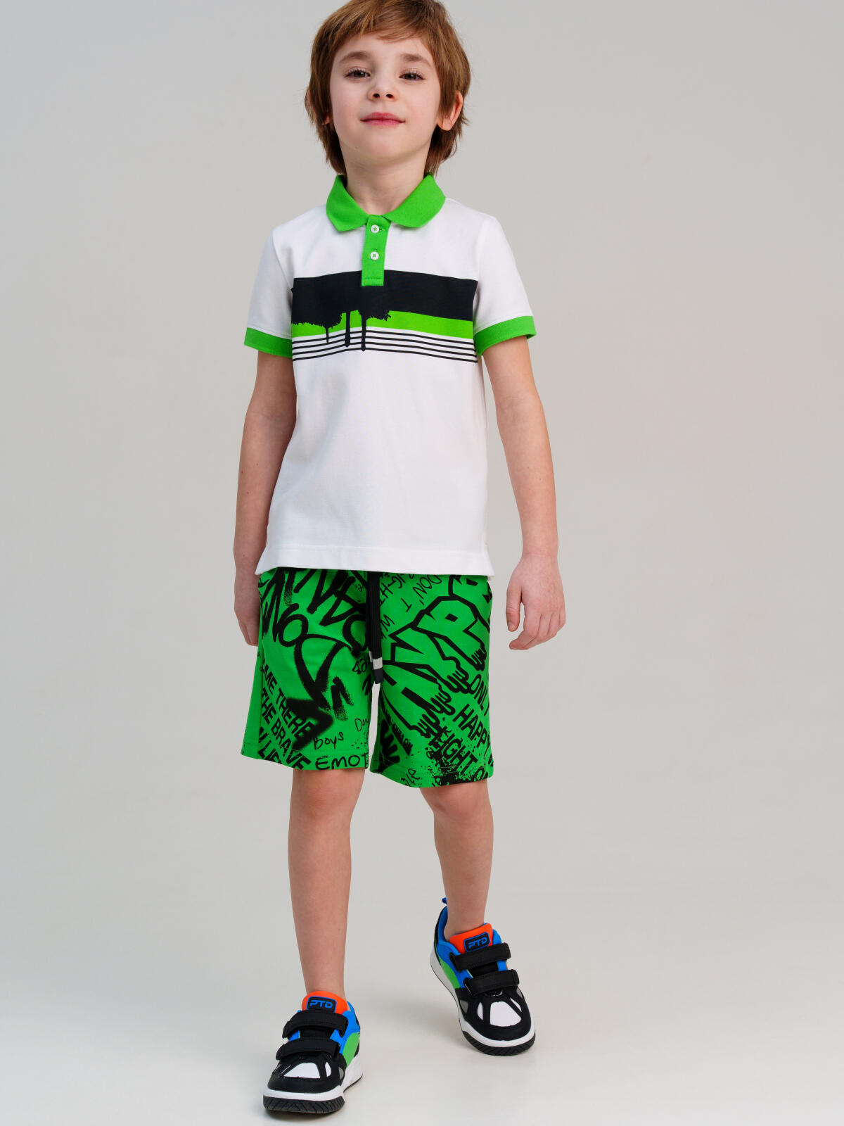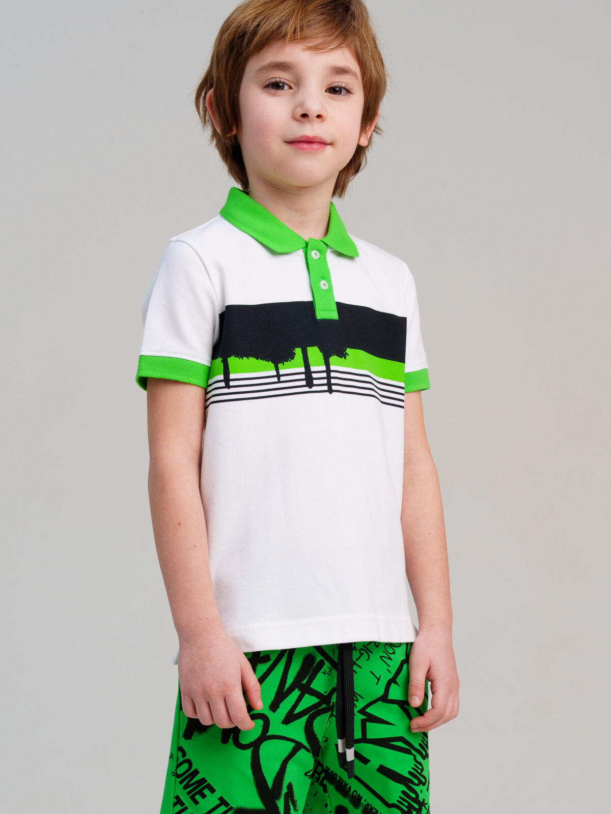 Футболка-поло детские для мальчика. Поло классической посадки из фактурного трикотажного полотна пике. Модель с высоким содержанием хлопка 95%. Благодаря наличию эластана в составе ткани изделие проще в уходе и держит форму. Планка с застежкой на пуговицы. Разрезы по бокам. Модель выполнена из качественного и приятного на ощупь трикотажа.