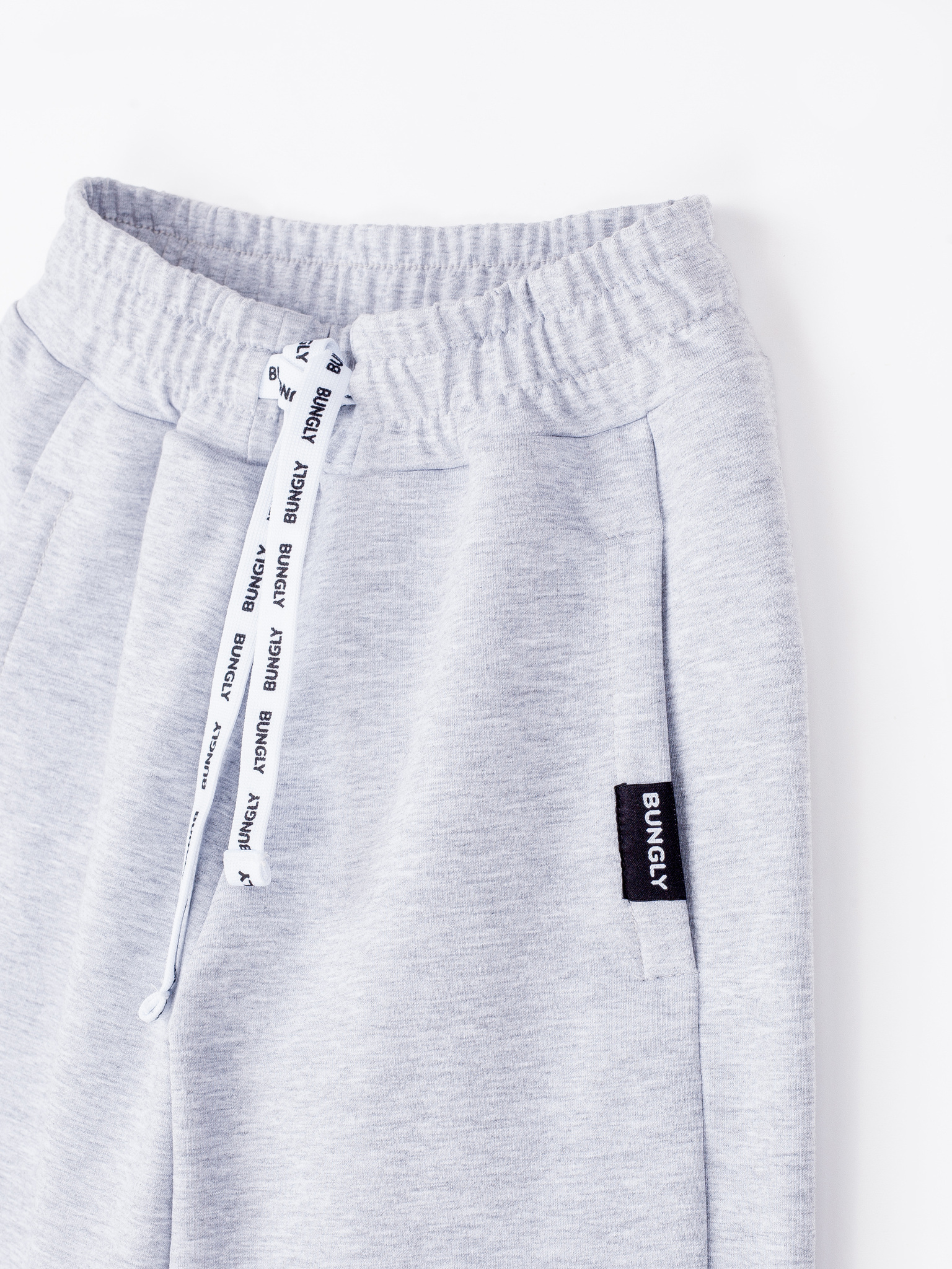 Широкий эластичный пояс с брендированным шнуром для комфортной посадки по фигуре.
