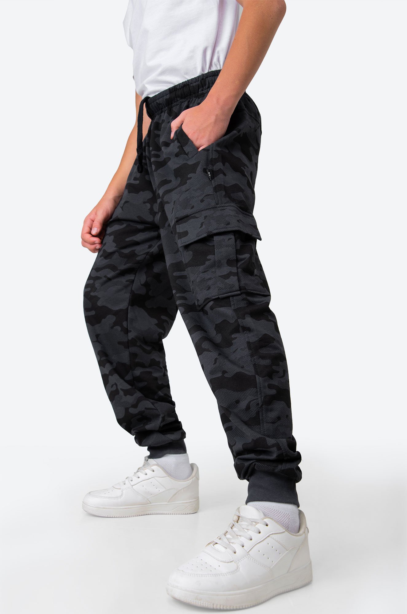 Детские спортивные брюки в стиле милитари для мальчиков и подростков выполнены из приятного к телу хлопкового футера. Практичные камуфляжные джоггеры с эластичным поясом на резинке идеально подходят для физкультуры в школу.