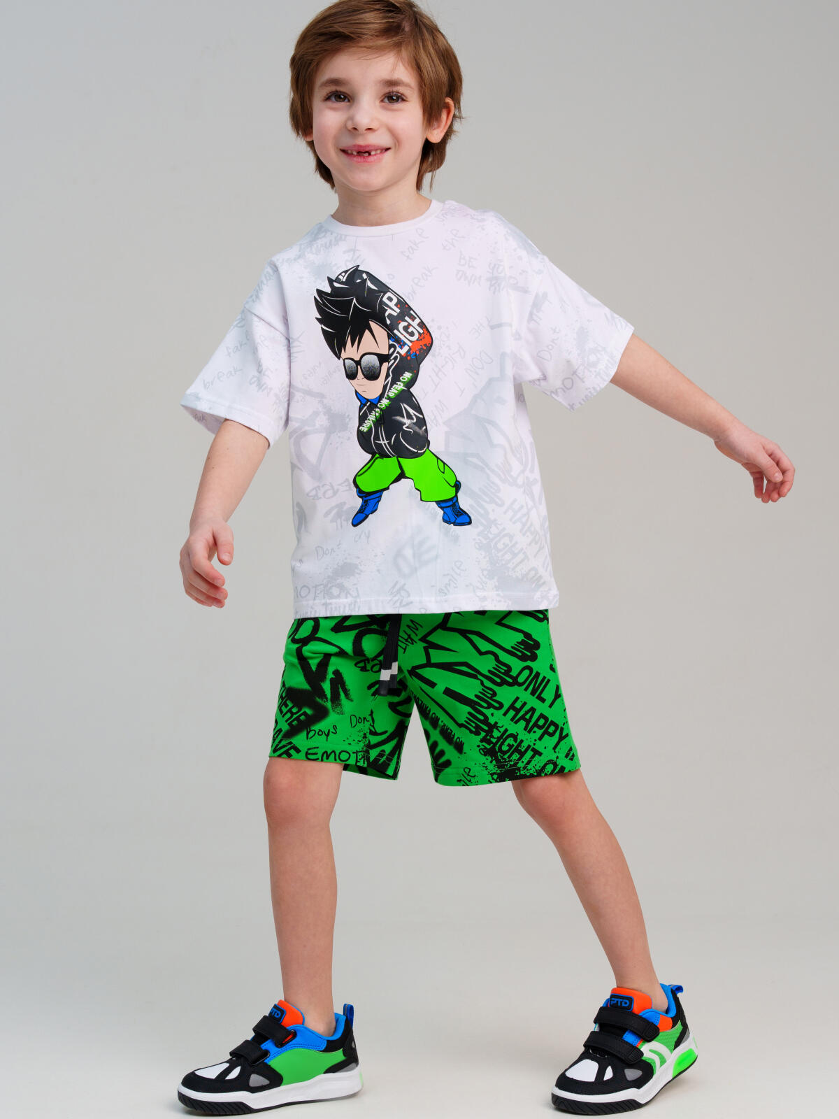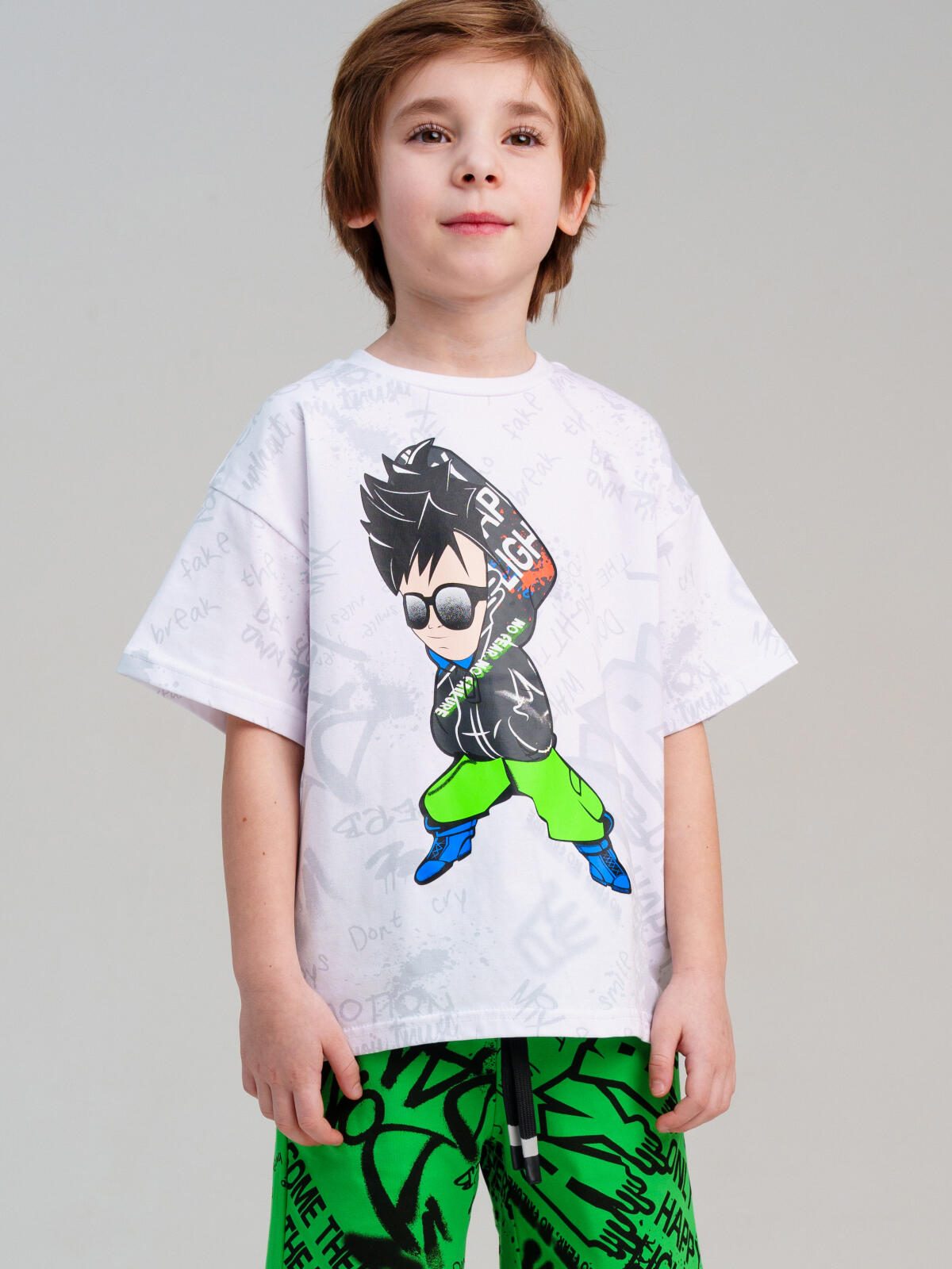 Футболка детская для мальчика. Высокое содержание хлопка. Благодаря наличию эластана в составе ткани изделие держит форму и меньше мнется. Модель выполнена из качественного и приятного на ощупь трикотажа.