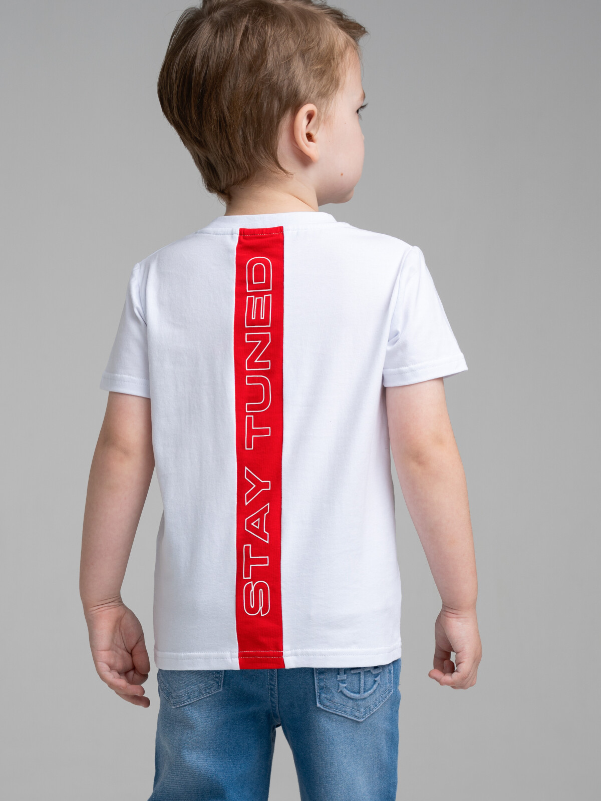 Футболка детская для мальчика. Футболка из качественного и приятного на ощупь трикотажа джерси с высоким содержанием хлопка 95%. Благодаря наличию эластана в составе ткани изделие проще в уходе и держит форму. Модель выполнена из качественного и приятного на ощупь трикотажа.