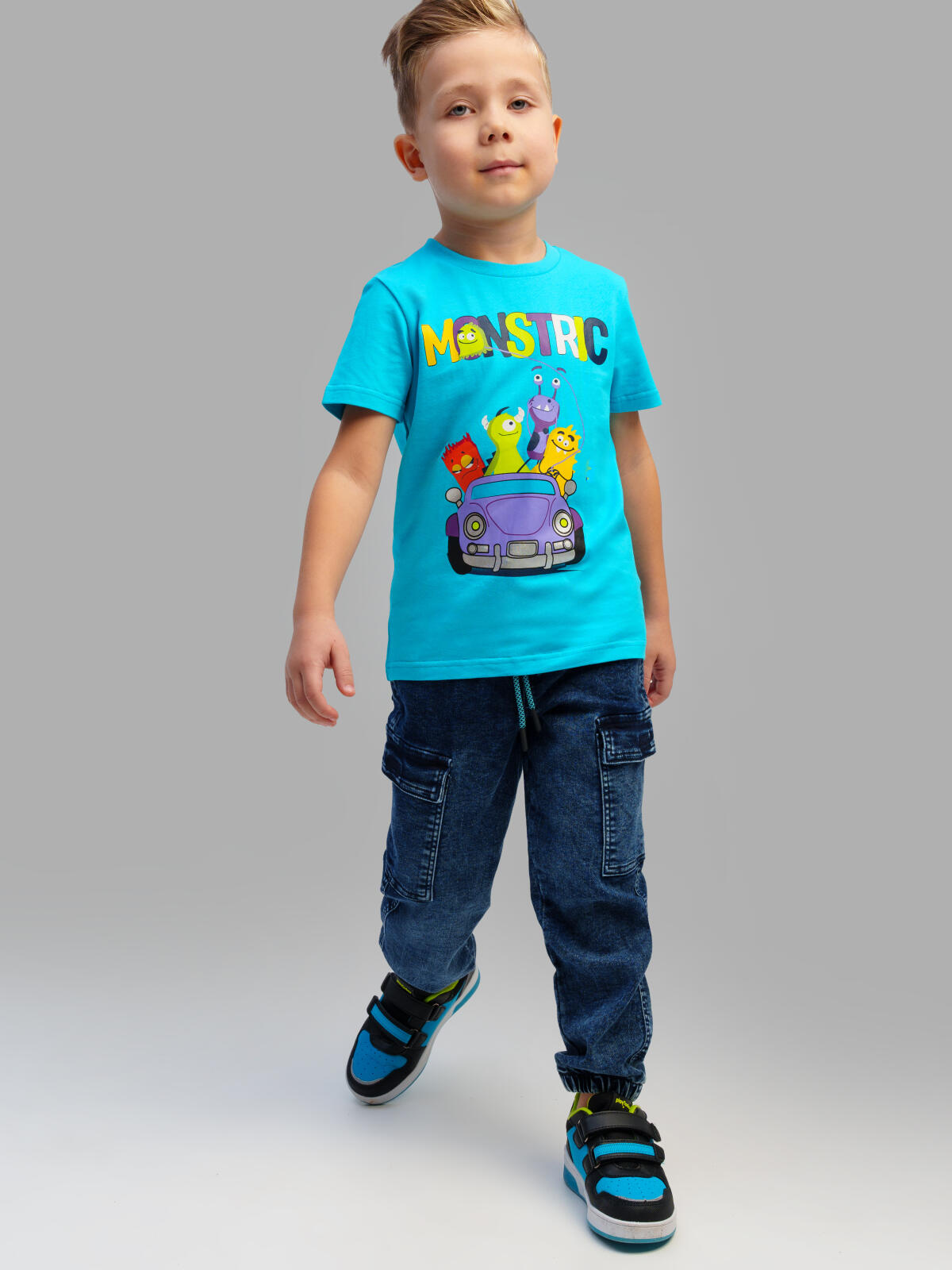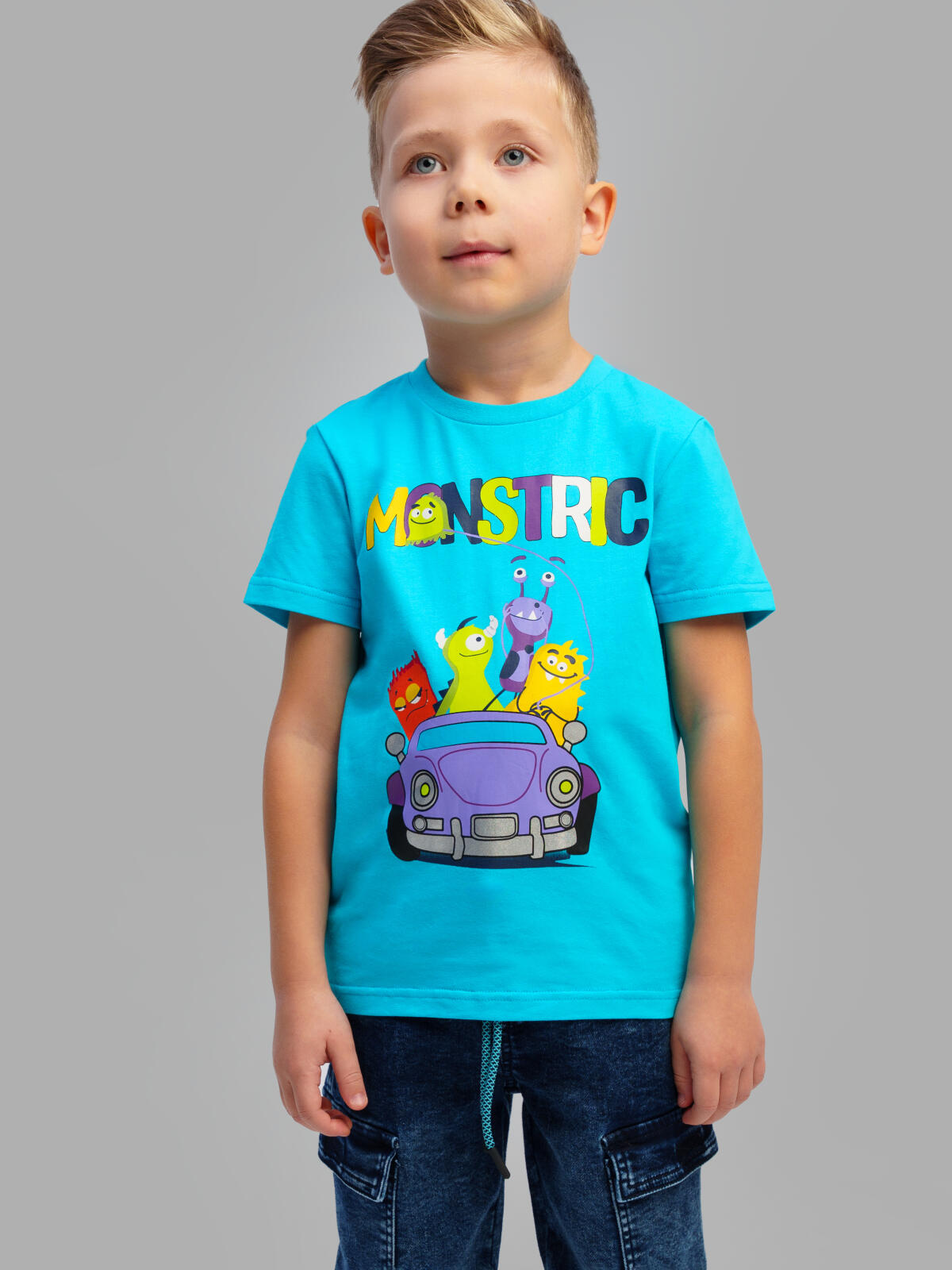 Футболка детская для мальчика. Футболка из качественного и приятного на ощупь трикотажа джерси с высоким содержанием хлопка 95%. Благодаря наличию эластана в составе ткани изделие проще в уходе и держит форму. Модель выполнена из качественного и приятного на ощупь трикотажа.