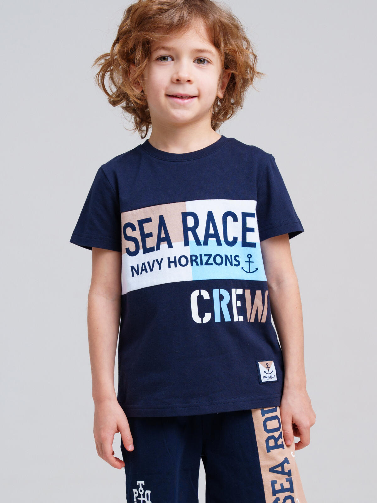 Футболка детская для мальчика. Футболка из качественного и приятного на ощупь трикотажа джерси с высоким содержанием хлопка 95%. Благодаря наличию эластана в составе ткани изделие проще в уходе и держит форму. Модель выполнена из качественного и приятного на ощупь трикотажа.