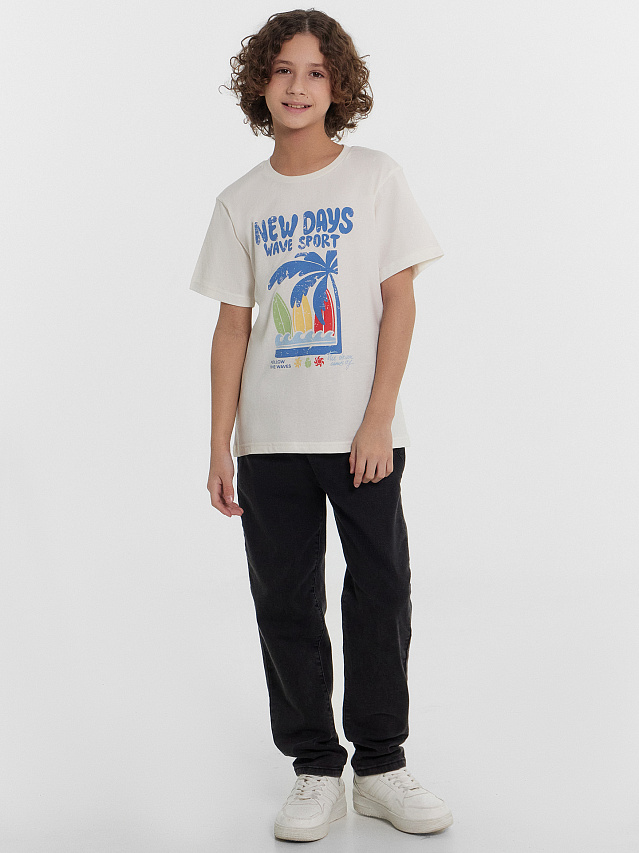Эта футболка для мальчиков — удобный и практичный элемент гардероба, идеально подходящий для повседневной носки! Прямой силуэт обеспечивает свободную посадку, позволяя легко сочетать модель с разными видами одежды. Короткие рукава делают футболку универсальной и комфортной, а спущенная линия плеча добавляет современный и расслабленный стиль. Горловина круглой формы с обтачкой из рибаны мягко прилегает к шее, обеспечивая удобство и аккуратный вид. Низ футболки и рукавов обработан швом вподгибку, что увеличивает прочность изделия и делает его аккуратным даже после многочисленных стирок. Изделие выполнено из хлопковой кулирки, которая отличается воздухопроницаемостью и мягкостью, создавая комфорт в течение дня. Прекрасный выбор для стильного и удобного гардероба!