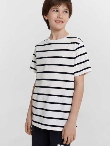Футболка для мальчиков — удобная и стильная модель, идеально подходящая для активных дней. Прямой силуэт обеспечивает комфортную посадку, а широкие рукава добавляют свободу движений. Круглая горловина делает изделие универсальным и легко сочетаемым с разными элементами гардероба. Футболка слегка укорочена, а широкая подгибка нижнего среза и рукавов придают завершенный и аккуратный вид. Выполненная из натурального хлопка, она отличается мягкостью и воздухопроницаемостью, что делает её отличным выбором для повседневного ношения. Стиль и комфорт в каждой детали!