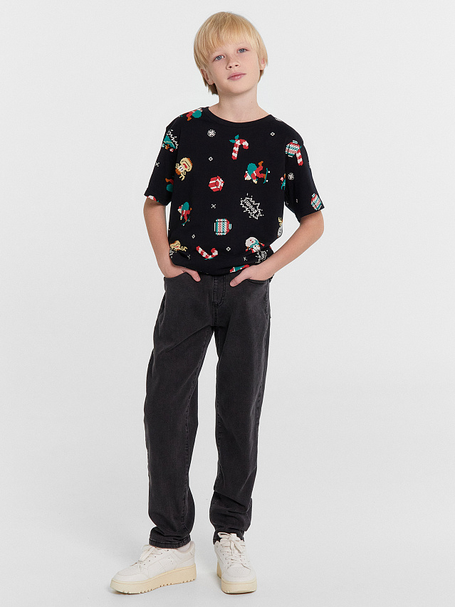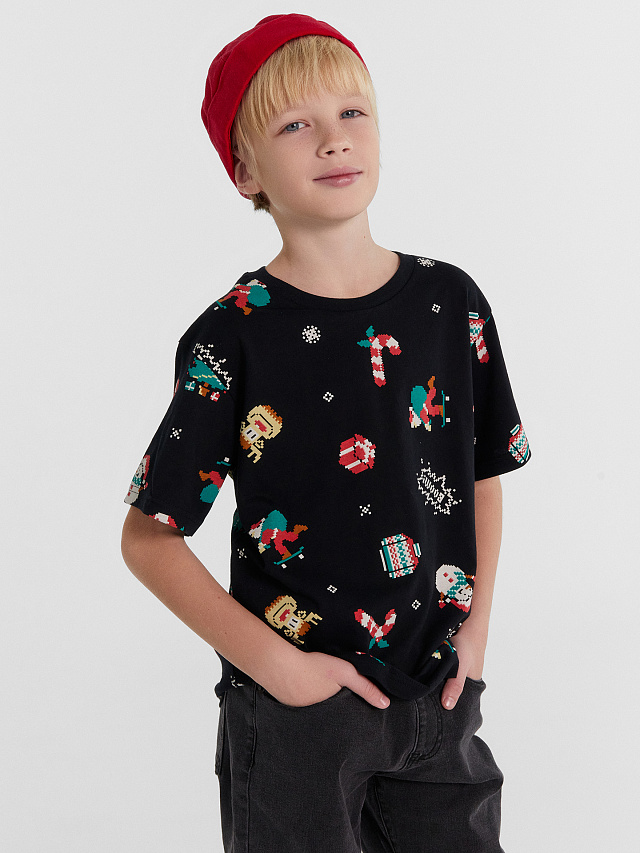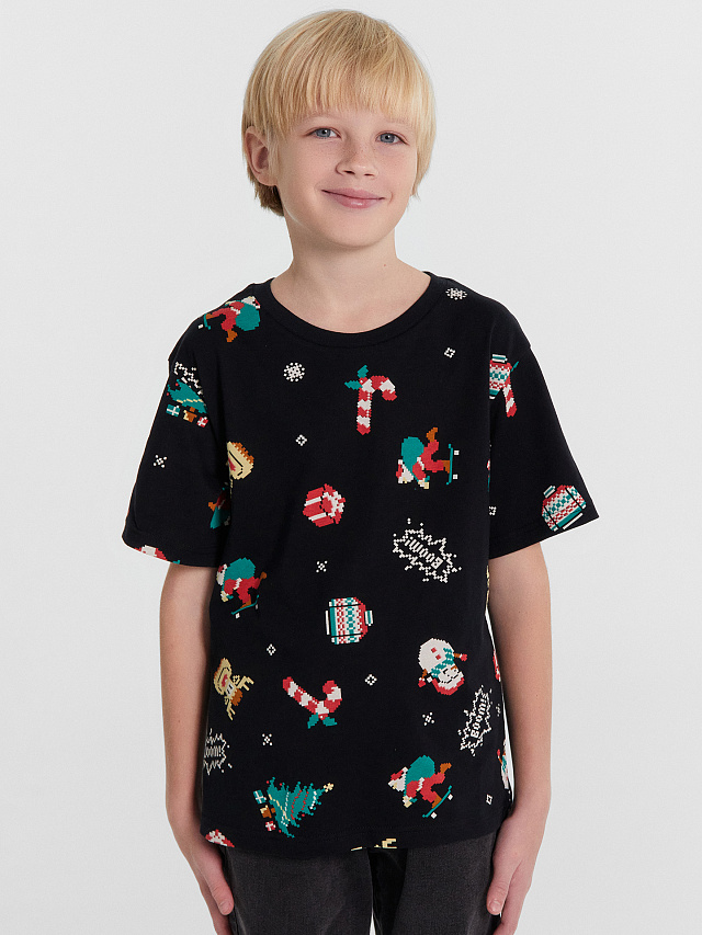 Футболка для мальчиков черная с новогодним принтом