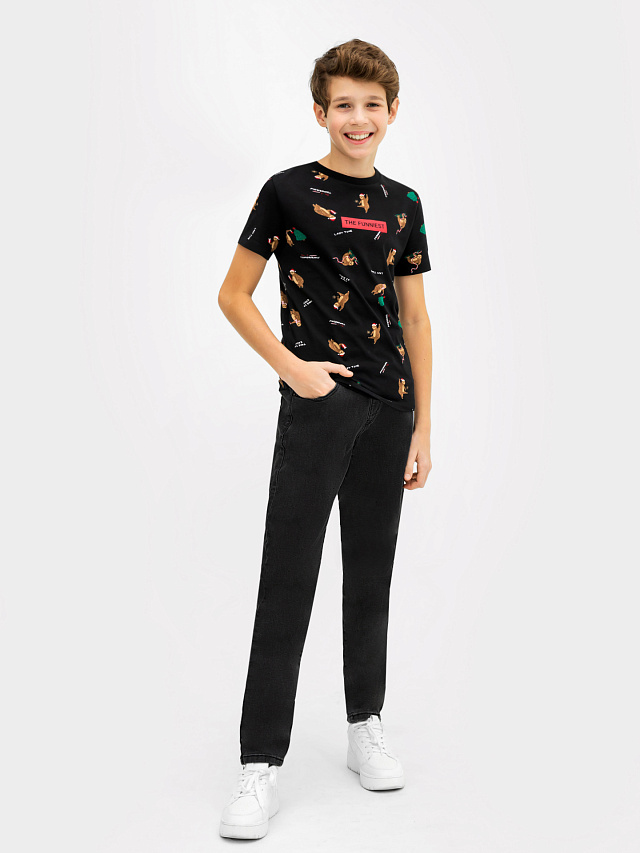 Футболка для мальчиков черная с принтом "ленивцы"