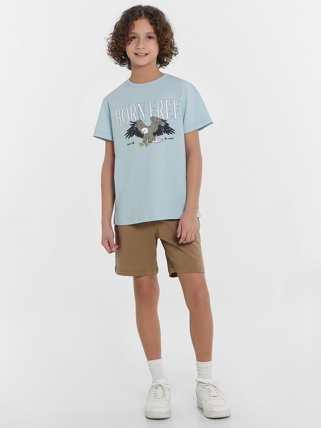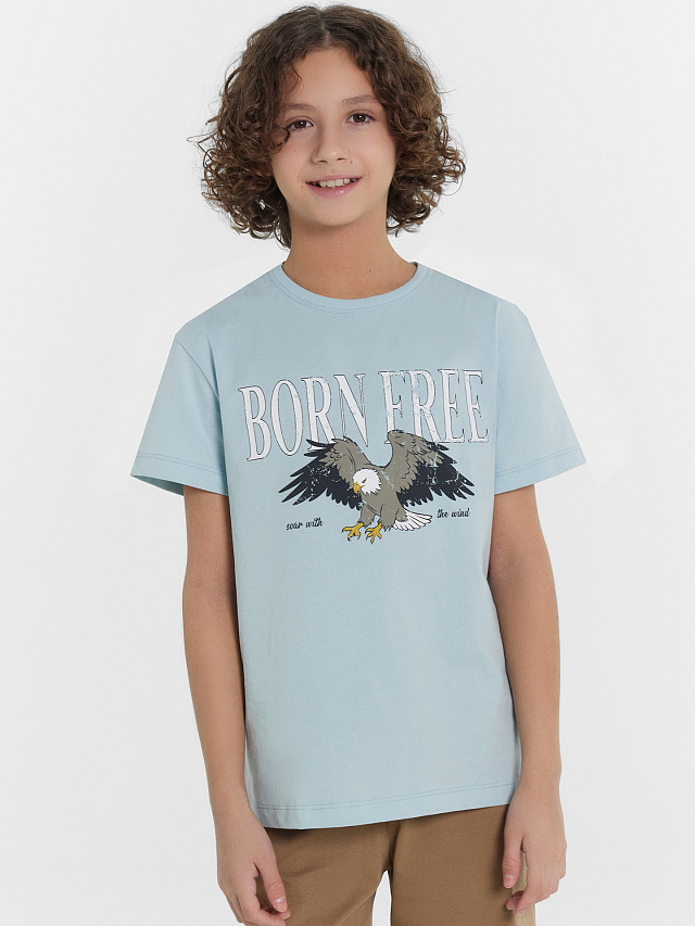 Футболка для мальчиков голубая с принтом и надписью "Born free"