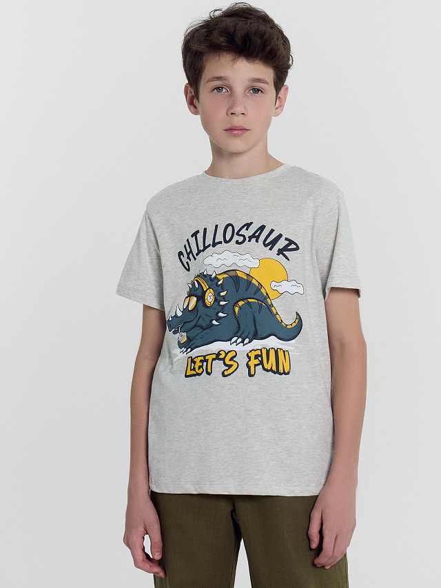 Футболка для мальчиков мультипак (2 шт.) в сером и зеленом цвете с динозаврами