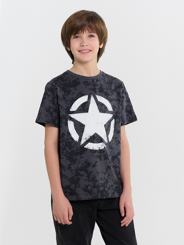 Футболка для мальчиков с принтом в стиле милитари и печатью в виде звезды