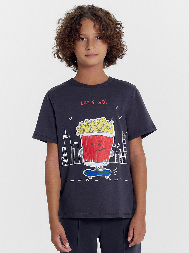 Футболка для мальчика из высококачественного хлопка с оригинальным принтом в виде картошки фри и надписи "Lets go". Ткань мягкая, легкая и эластичная, не сковывает движения, комфортная в носке, отлично подходит для носки в любое время года как верхняя одежда — летом или изделие, которое можно надеть под другую вещь — в прохладное время года. Детская футболка для мальчика подойдет для детского сада, активных игр, занятий спортом, прогулок и путешествий. Она стала поистине базовым элементом гардероба, так как сочетается с большинством одежды. В коллекции есть базовые и яркие цвета, однотонные модели и варианты с интересными дизайнерскими принтами. Эти детские футболки подойдут как для высоких, так и не для высоких мальчиков. Отличный выбор от Mark Formelle на каждый день!