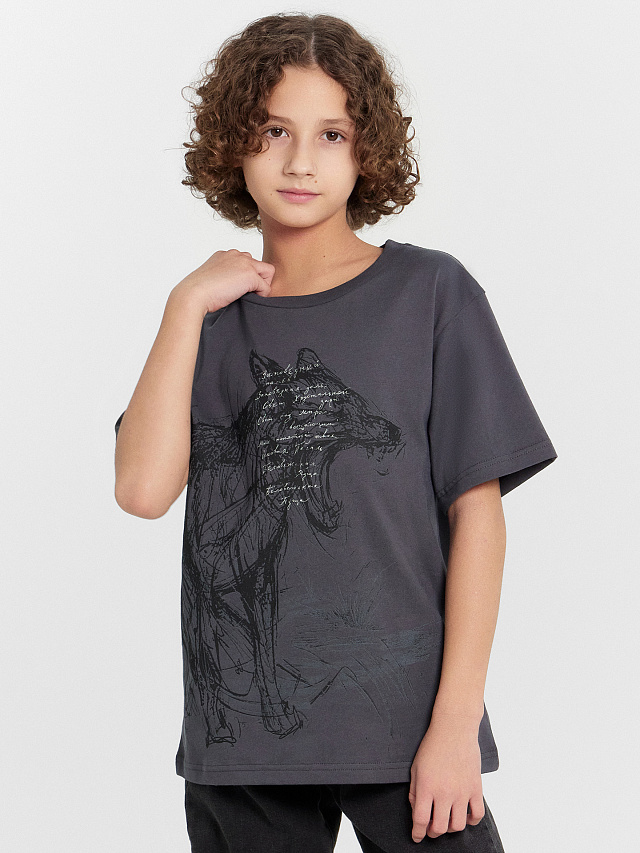 Футболка для мальчиков серая с принтом "Заповедный напев..."