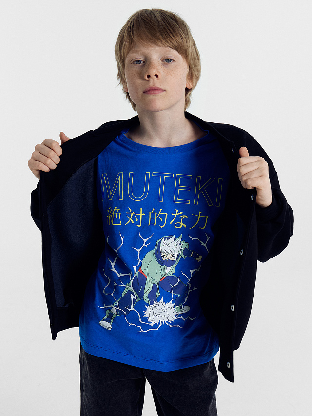 Стильная футболка для мальчиков из высококачественного 100% хлопка с печатью в виде надписи "Nuteki". Мягкая, легкая и эластичная, не сковывает движения, комфортная в носке. Спущенная линия плеча, длина до середины бедер, свободный прямой силуэт, горловина круглая. Изделие сохраняет свой насыщенный цвет и качество даже после многократных стирок. Обладает хорошей устойчивостью к выцветанию и отлично держит форму. Подойдет для детского сада, активных игр, занятий спортом, прогулок и путешествий. Можно носить в сочетании с джинсами или спортивными брюками, а также с курткой или свитером в холодное время года. Отличный выбор для детей от Mark Formelle на каждый день!