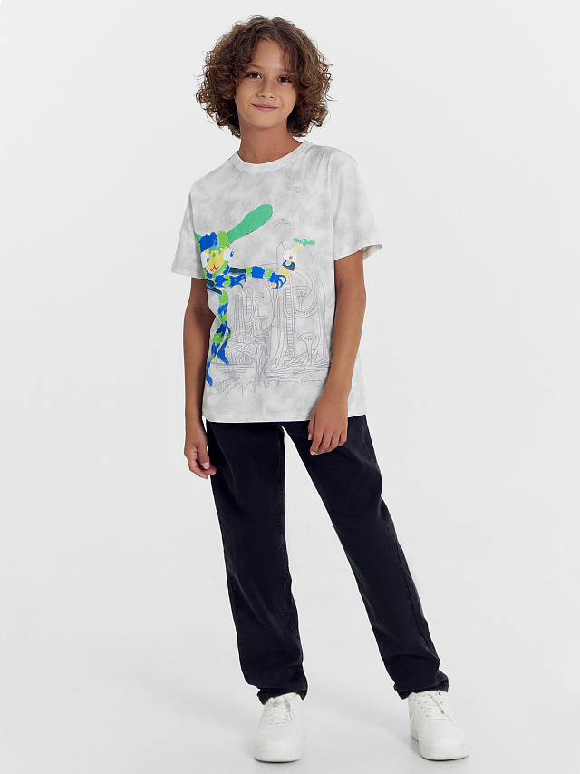 Футболка для мальчиков светло-серая с дизайнерским принтом