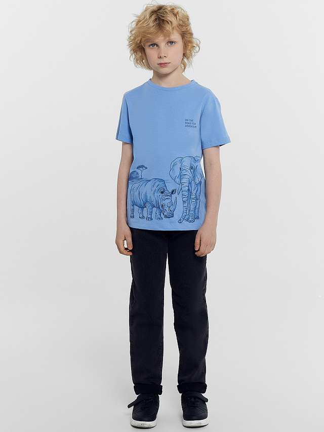 Футболка для мальчиков светло-синяя с печатью