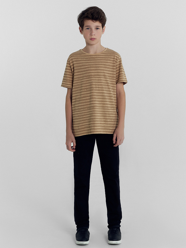 Футболка для мальчиков темно-бежевая в полоску