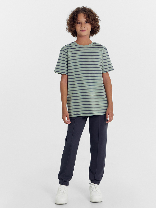 Футболка для мальчиков в серо-зеленую полоску