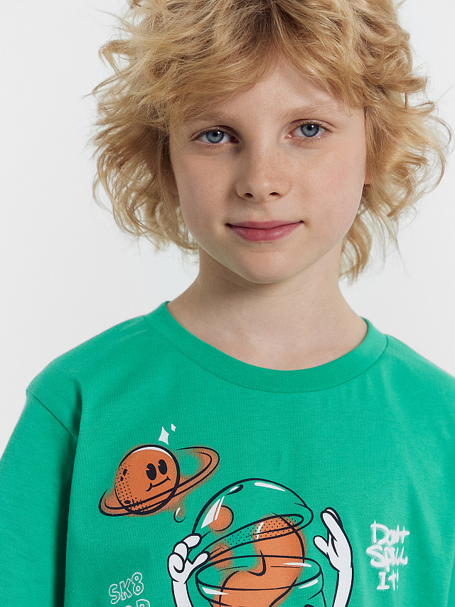 Футболка для мальчиков зеленая с печатью