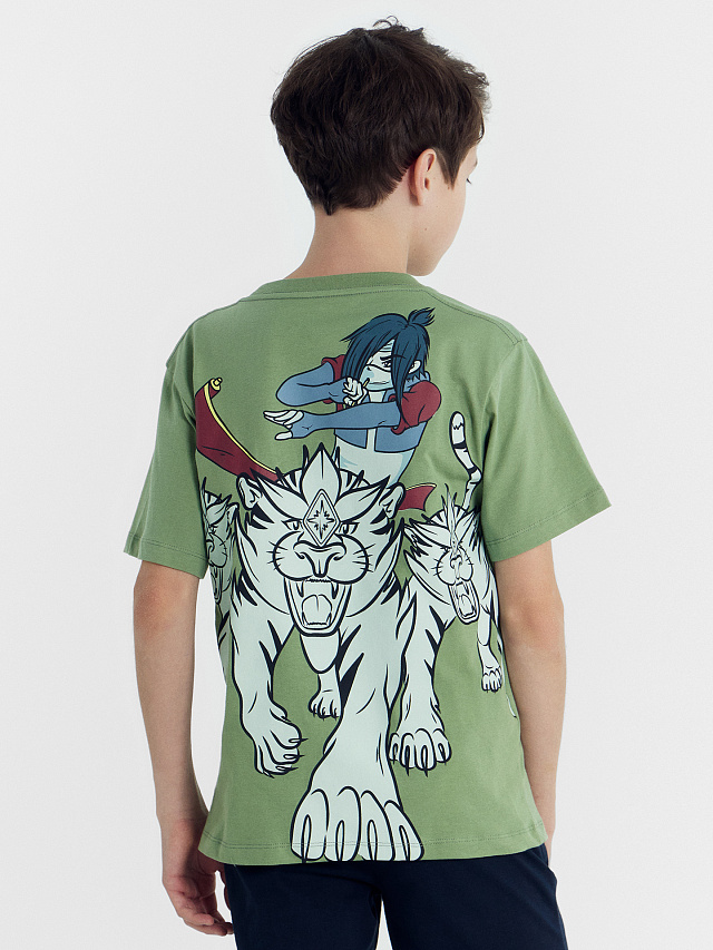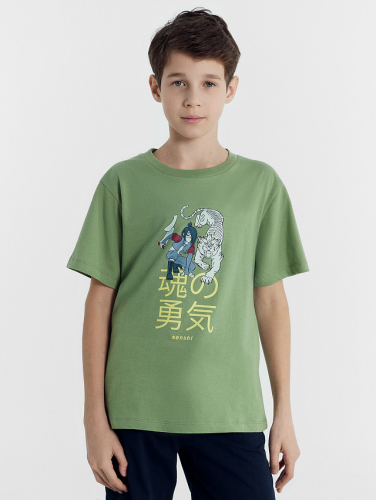 Футболка для мальчиков зеленая с печатью