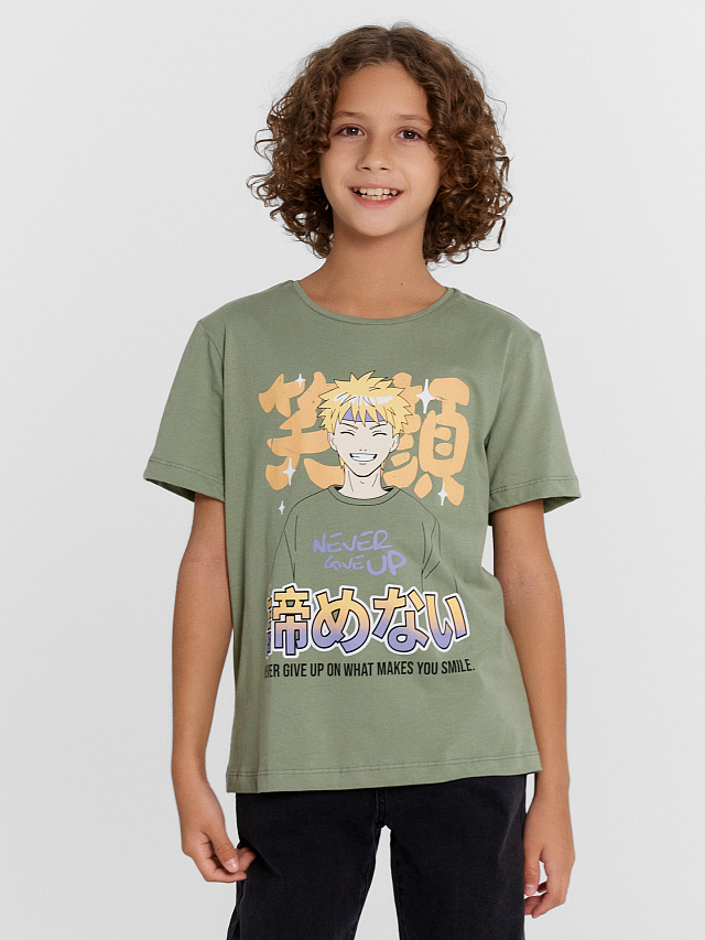 Футболка для мальчиков зеленя с печатью