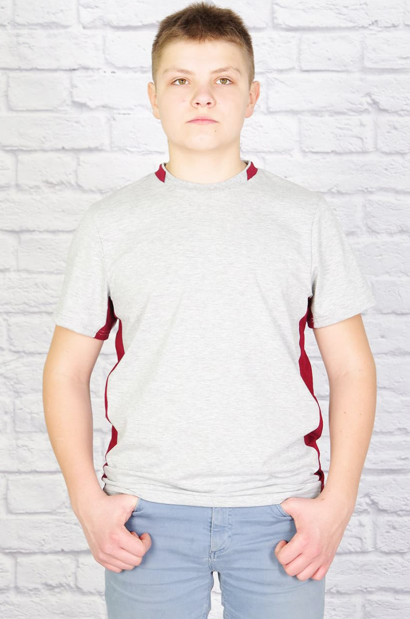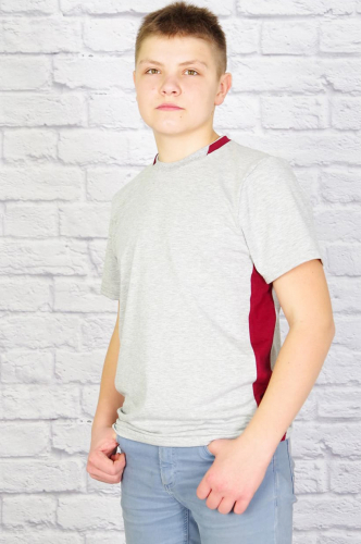 Стильная футболка для мужчин на каждый день. Модель прямого кроя, рукав втачной. Оригинальная отделка горловины из двойной эластичной рибаны разных цветов делает модель индивидуальной и яркой. Футболка отлично сидит на любой фигуре, а эффектное сочетание тканей, несомненно, положительно оценят все мужчины.